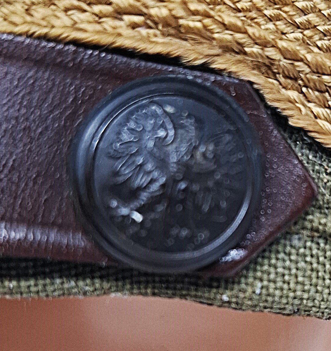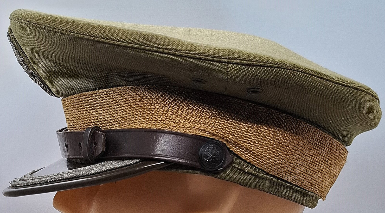 8 - guziki bakielitowe z wąsami metalowymi, w kolorze daszka, o średnicy 16 mm, z wizerunkiem orła państwowego, bez korony;