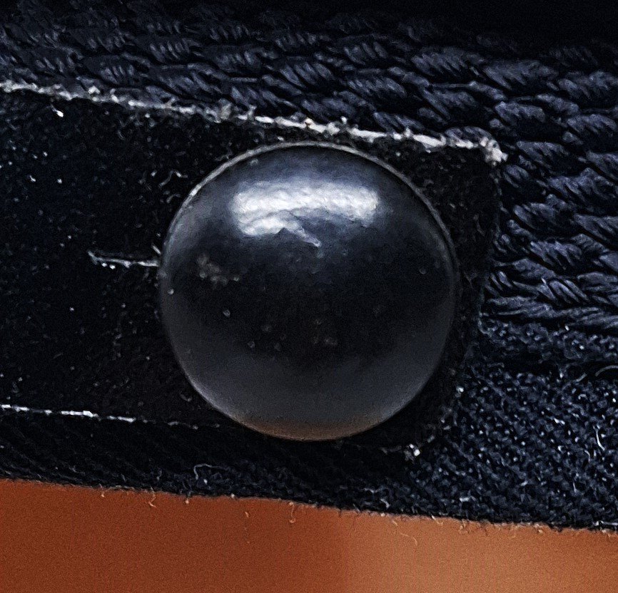 Czapka garnizonowa jest koloru czarnego (granatowego). Nałożony pokrowiec z białego materiału używany w okresie letnim. Daszek z tworzywa sztucznego z usztywnieniem i ceratowy pasek są koloru czarnego. Pasek dwuczęściowy regulowany na szlufki. Pasek przypięty guzikami z wąsami, wykonane z tworzywa sztucznego, gładkie, czarne o średnicy 14 mm. Wewnątrz potnik skórzany, brązowy, perforowany. W tylnej części wbity stempel kontroli jakości. Wnętrze wyłożone atłasowym materiałem w granatowym odcieniu. W denku transparentny romb z tworzywa stanowiący osłonę przed potem. Pod nim metka producenta i rozmiaru. Pod metką data. Rondo czapki napięte jest igielitowym(?) prętem zapewniającym regularny owal. Otok czapki materiałowy w kolorze czarnym. Na nim taśma otokowa z grubszego splotu w kolorze czarnym, do którego przyszyty jest orzeł. Stopień haftowany bajorkiem, umieszczony na pasku. Otok wsparty jest na czapce ślepą wypustką (dzierga) zabezpieczającą przed zsuwaniem. Daszek z góry obszyty gładkim, czarnym tworzywem. Od spodu, zielonym, porowatym. Rant daszka obszyty gładką, czarną, tworzywową lamówką. Na daszku pojedynczy, złoty galon