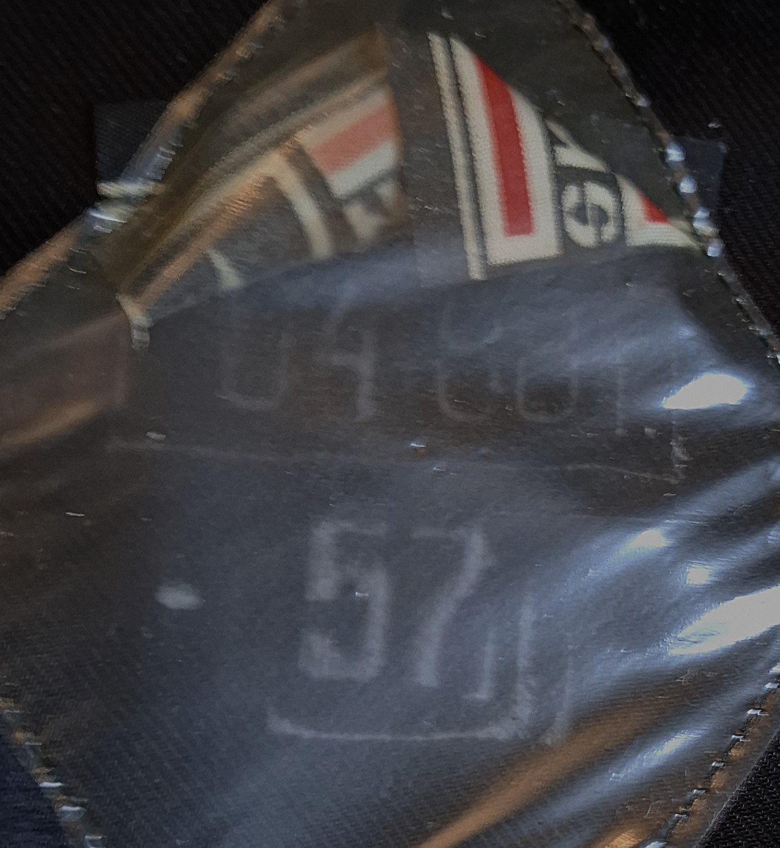 Orzełek oficerski haftowany złotym i srebrnym bajorkiem na czarnej podkładce z niebieską tarczą amazonek (peltą). Orzeł z kotwicą umieszczony wewnątrz wieńca wawrzynu złożonego z 12 liści (oficerski).