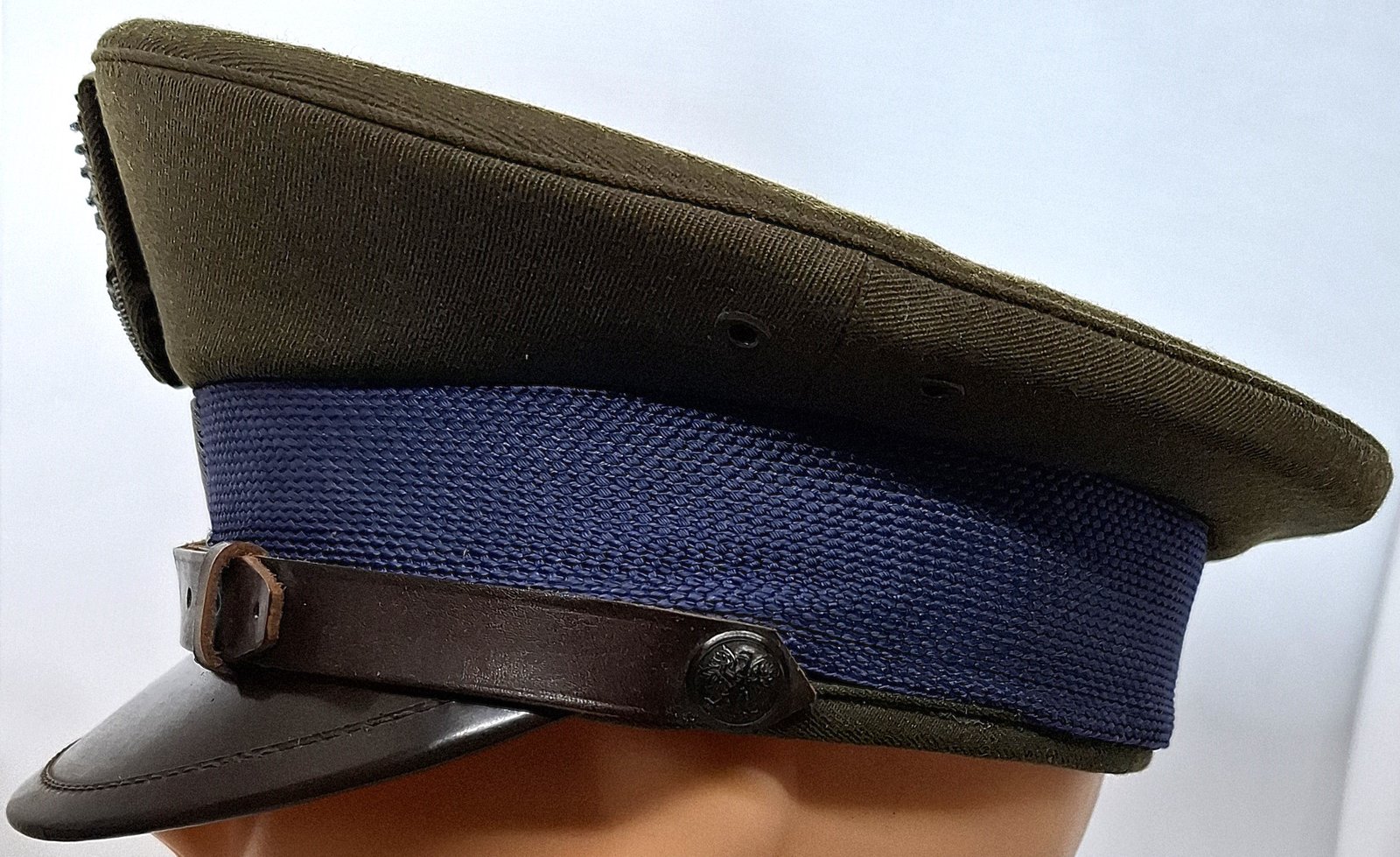 8 - guziki bakielitowe z wąsami metalowymi, w kolorze daszka, o średnicy 16 mm, z wizerunkiem orła państwowego, bez korony;
