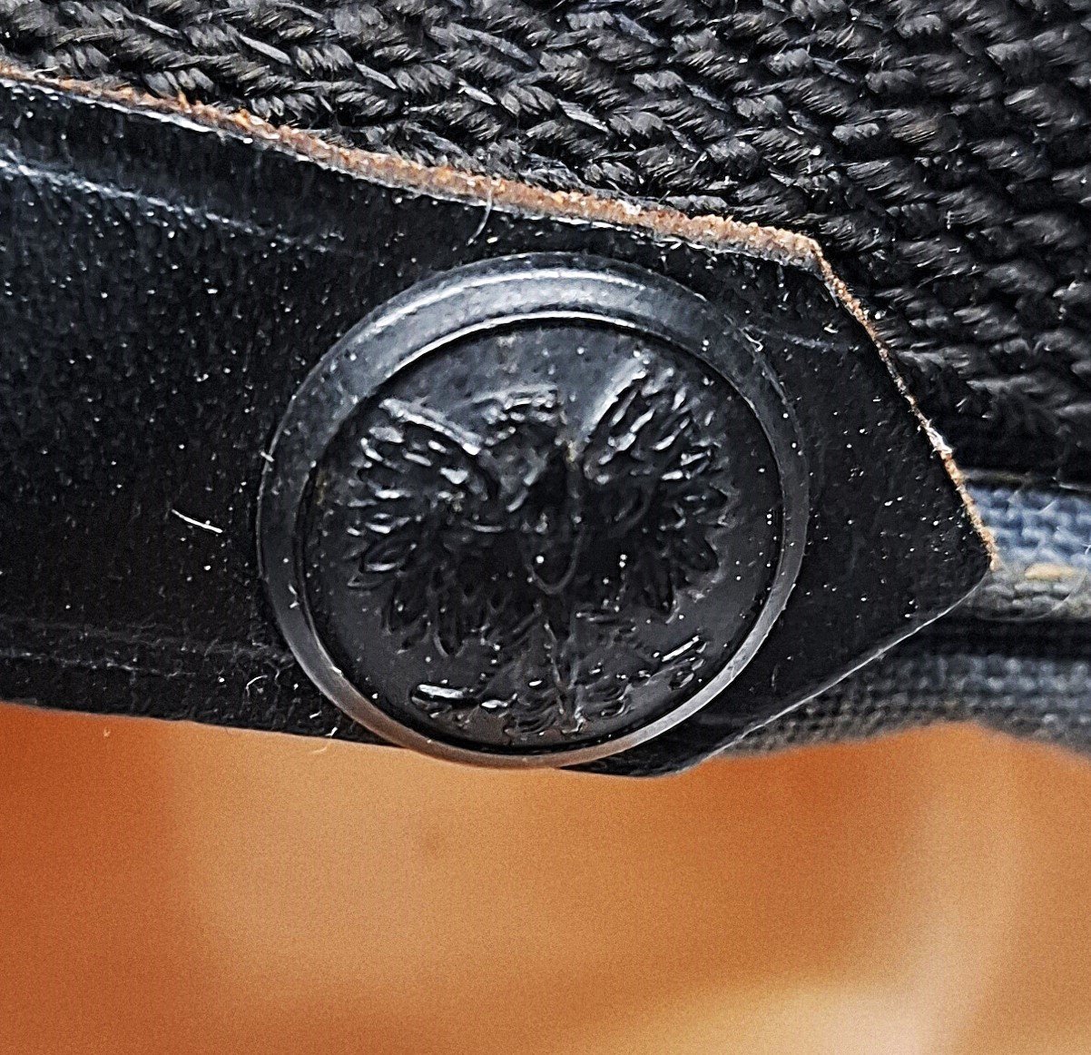 8 - guziki bakielitowe z wąsami metalowymi, w kolorze daszka, o średnicy 16 mm, z wizerunkiem orła państwowego, bez korony;