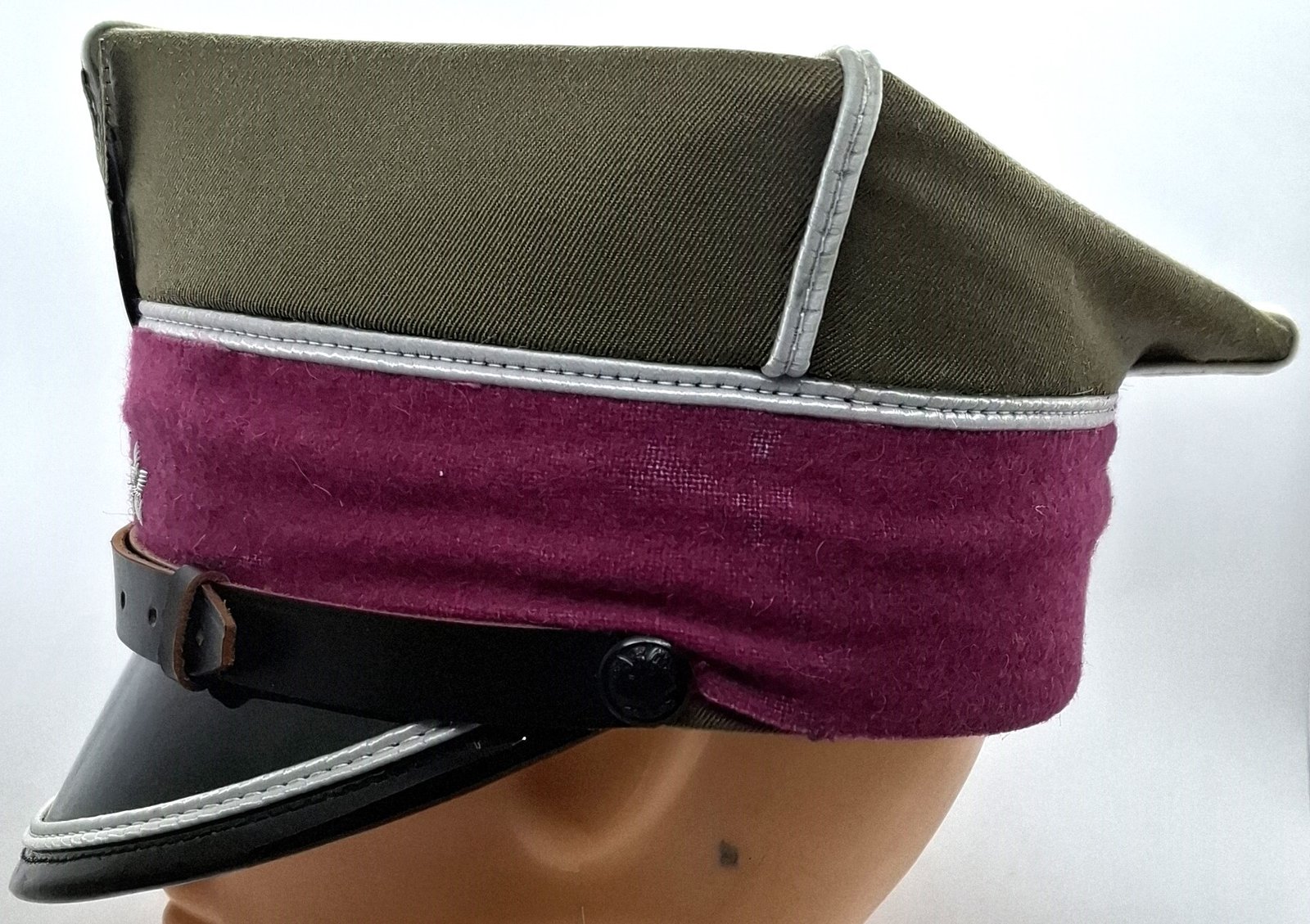Galon koloru srebrnego o szerokości 6 mm umieszczony na górnej krawędzi otoku w jednym rzędzie. Podobnie w jednym rzędzie naszyty w dolnej krawędzi daszku. Galon o szerokości 5 mm naszyty wzdłuż szwów (na krzyż) po zewnętrznej stronie denka, sięgający galonów na otoku.