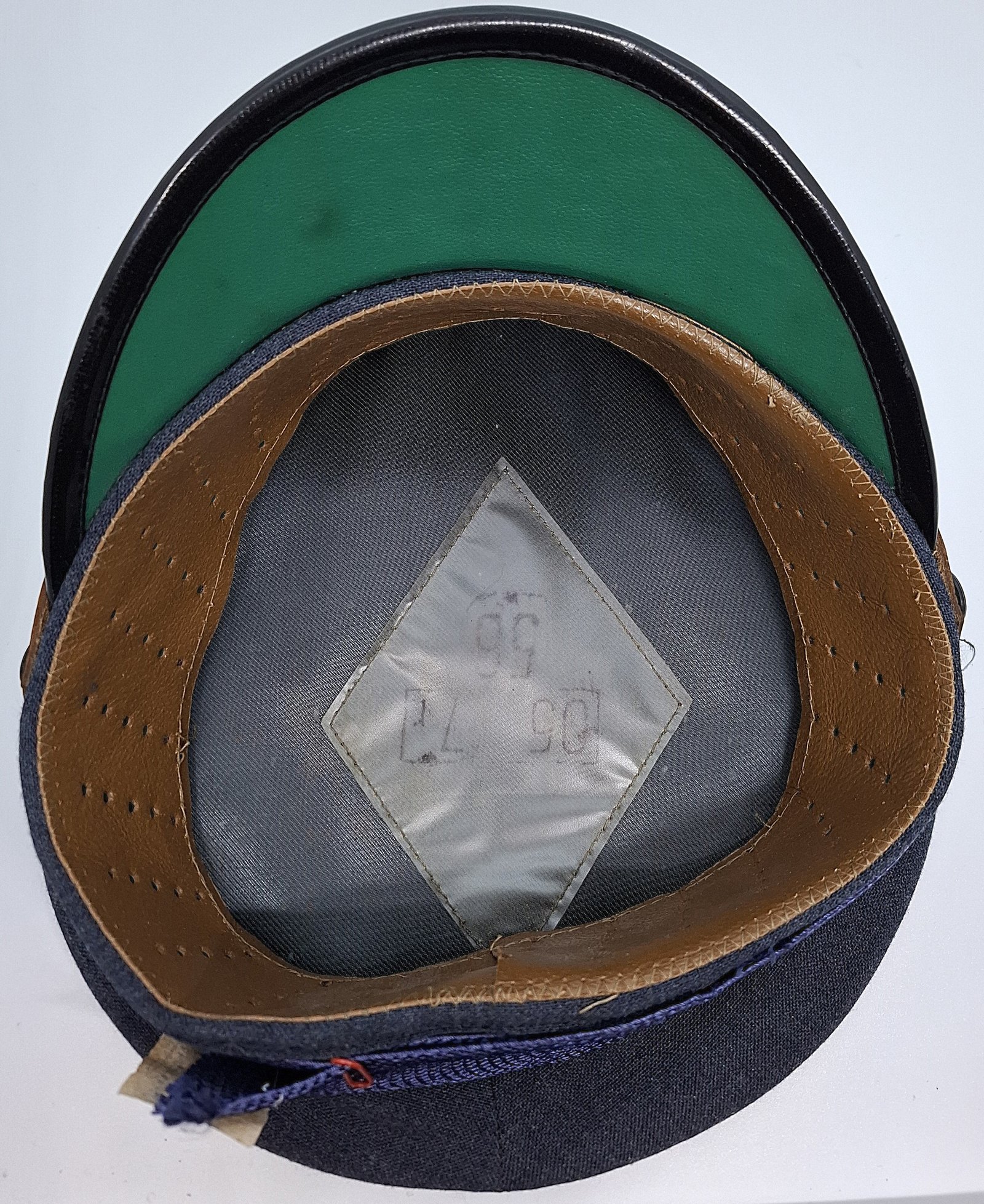 Materiał zasadniczy to tropik w kolorze stalowoszarym. Kształt czapki przyjmuje formę okrągłą denka. Między dnem, a kwaterami zaszyta wypustka z materiału zasadniczego. W przednich kwaterach usztywnienie z filcu i usztywniacza krawieckiego(?). Po obu stronach wietrzniki metalowe, okrągłe lakierowane na czarno. Rozmieszczone symetrycznie po obu stronach bocznych zszyć kwater. W denku znajduje się podszewka w odcieniu fioletu. Na środku wszyta tworzywowa, transparentna osłona denka. Pod nią stempel z rozmiarem i datą produkcji. Potnik wykonany ze skóry w kolorze oliwkowym, perforowanej otworami w skośnych kolumnach po 5 sztuk. Na wewnętrznej stronie potnika wbity stempel kontroli jakości. Daszek czarny, wykonany z tworzywa sztucznego. Z góry gładki i błyszczący, od spodu zielony o fakturze skóropodobnej. Całość usztywniona (tekturą?). Pasek podbródkowy w formie skórzanej, dwuczęściowej spinanej na klamerkę. Klamerka metalowa. Przytwierdzony dwoma guzikami tworzywowymi, czarnymi z wizerunkiem orła administracyjnego bez korony. Mocowane za pomocą metalowych wąsów. Usztywnienie otoku wykonane prawdopodobnie z grubego tworzywa sztucznego. Otok w postaci taśmy o grubym splocie w kolorze granatowym. Stopień haftowany srebrnym bajorkiem. Na przednich kwaterach orzeł Służby Więziennej haftowany bajorkiem na podkładce z materiału zasadniczego. Orzeł mocowany na wąsy.