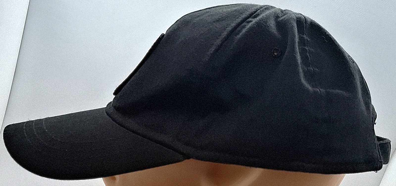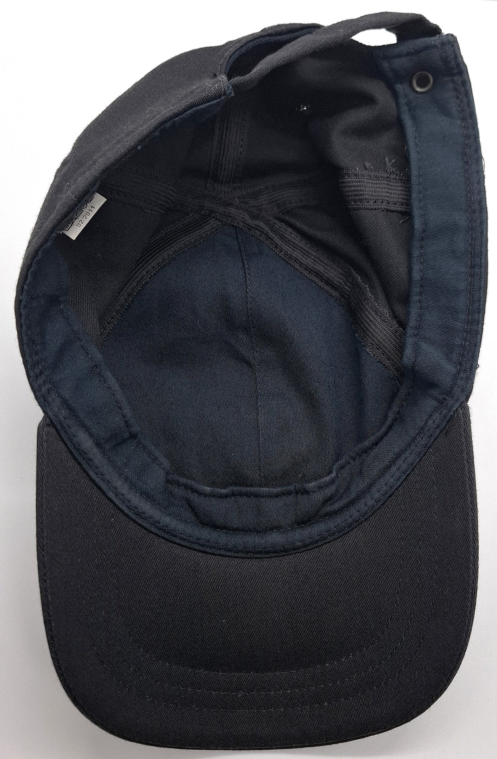 Orzełek wyszywany srebrno-szarą nicią na materiale zasadniczym. Materiał zasadniczy w kolorze czarnym. Czerep zszyty z 6 kwater. W dwóch tylnych okienko z metalowym zatrzaskiem do zmiany rozmiaru typu koperta. Pod dwoma przednimi podszewka materiałowa w kolorze czarnym. Wietrzniki w bocznych i tylnych kwaterach. Potnik z materiału zasadniczego podszytego fizeliną (?). Tworzywowe usztywnieni daszku obszyte materiałem zasadniczym z trzema przeszyciami.