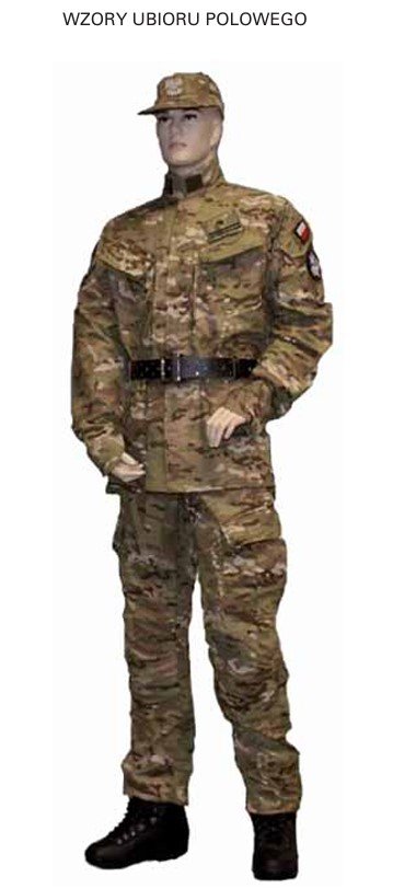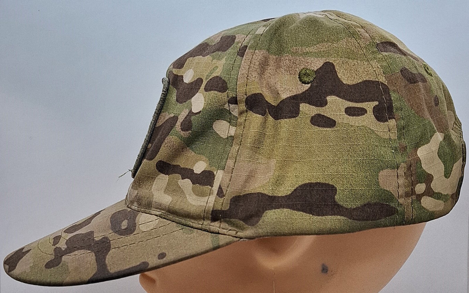 Orzełek wyszywany srebrno-szarą nicią na materiale zasadniczym rip-stop. Materiał zasadniczy w kamuflażu typu "multicam". Czerep zszyty z 6 kwater. W dwóch tylnych okienko z metalowym zatrzaskiem do zmiany rozmiaru typu koperta. Pod dwoma przednimi podszewka materiałowa w kolorze czarnym. W bocznych i tylnych kwaterach wietrzniki. Potnik z materiału podszytego fizeliną. Tworzywowe usztywnieni daszku obszyte materiałem zasadniczym z trzema przeszyciami.