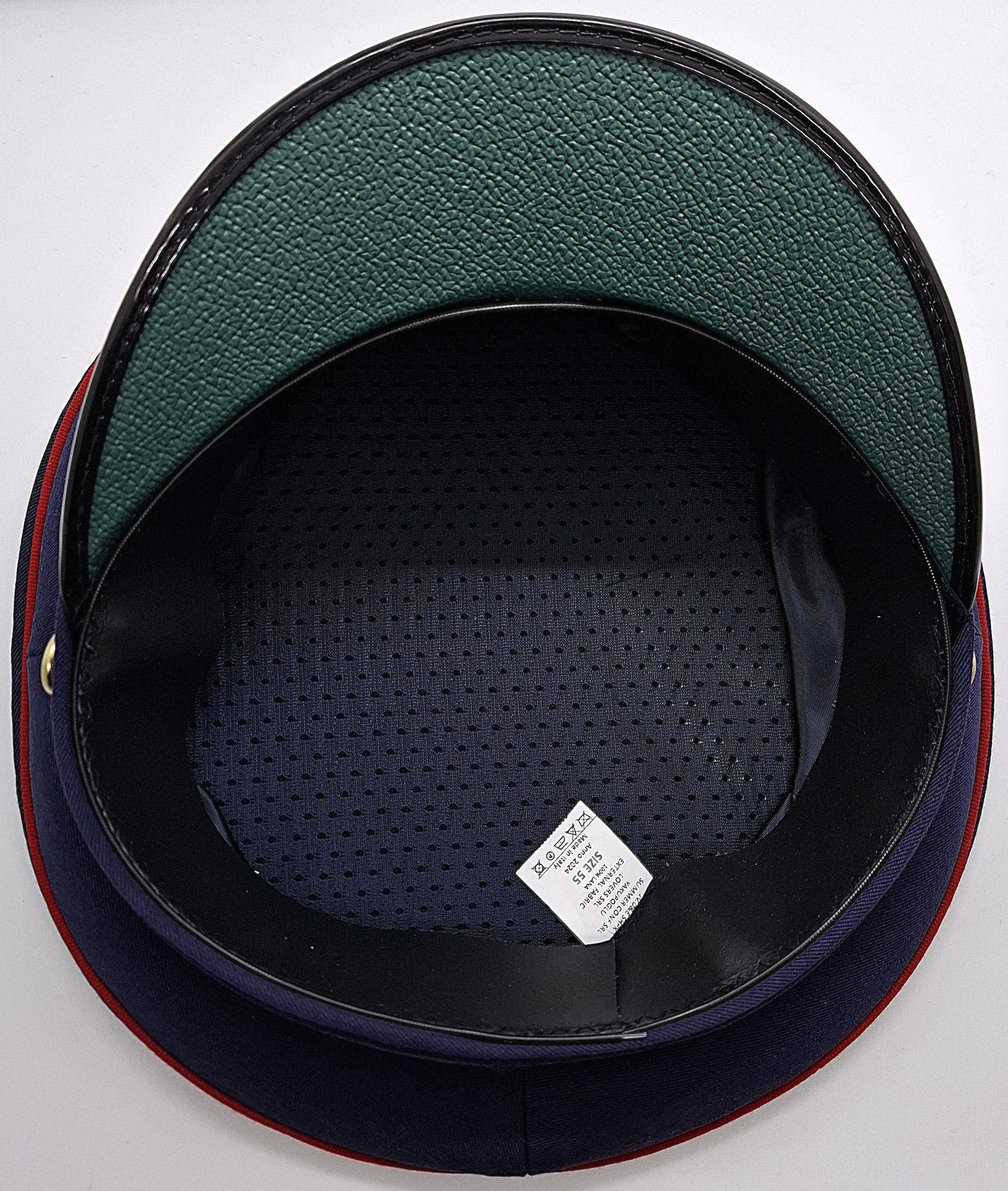 Tkanina zasadnicza podobna do polskiego tropiku (drobniejszego). Górna część przyszyta do kwater z wypustką koloru czerwonego. W przednich kwaterach usztywnienie tworzywowe i gąbka utrzymująca materiał tkaniny w napiętym stanie. Na przednich kwaterach umieszczona odznaka. Odznaka tworzywowa, mocowana na słupek i nakrętkę. Wewnątrz atłasowa, perforowana podszewka. Potnik z czarnej skóry, łączenie w tylnej części, niezszyte. Do potnika przyszyta metka z danymi producenta, rozmiaru i datą. Usztywnienie otoku prawdopodobnie tworzywowe. Na otoku taśma otokowa z innego materiału w kolorze czarnym. Po obu stronach guziki złote, metalowe z hełmem Skanderbega. Mocowane metalowymi wąsami. Pasek tworzywowy, dwuczęściowy, czarny, gładki z wsuwką na jednym końcu celem regulacji. Daszek sztywny, czarny (gładki) z góry, zielony (o głębokiej fakturze) w spodniej części, obszyty czarnym tworzywem na rancie.
