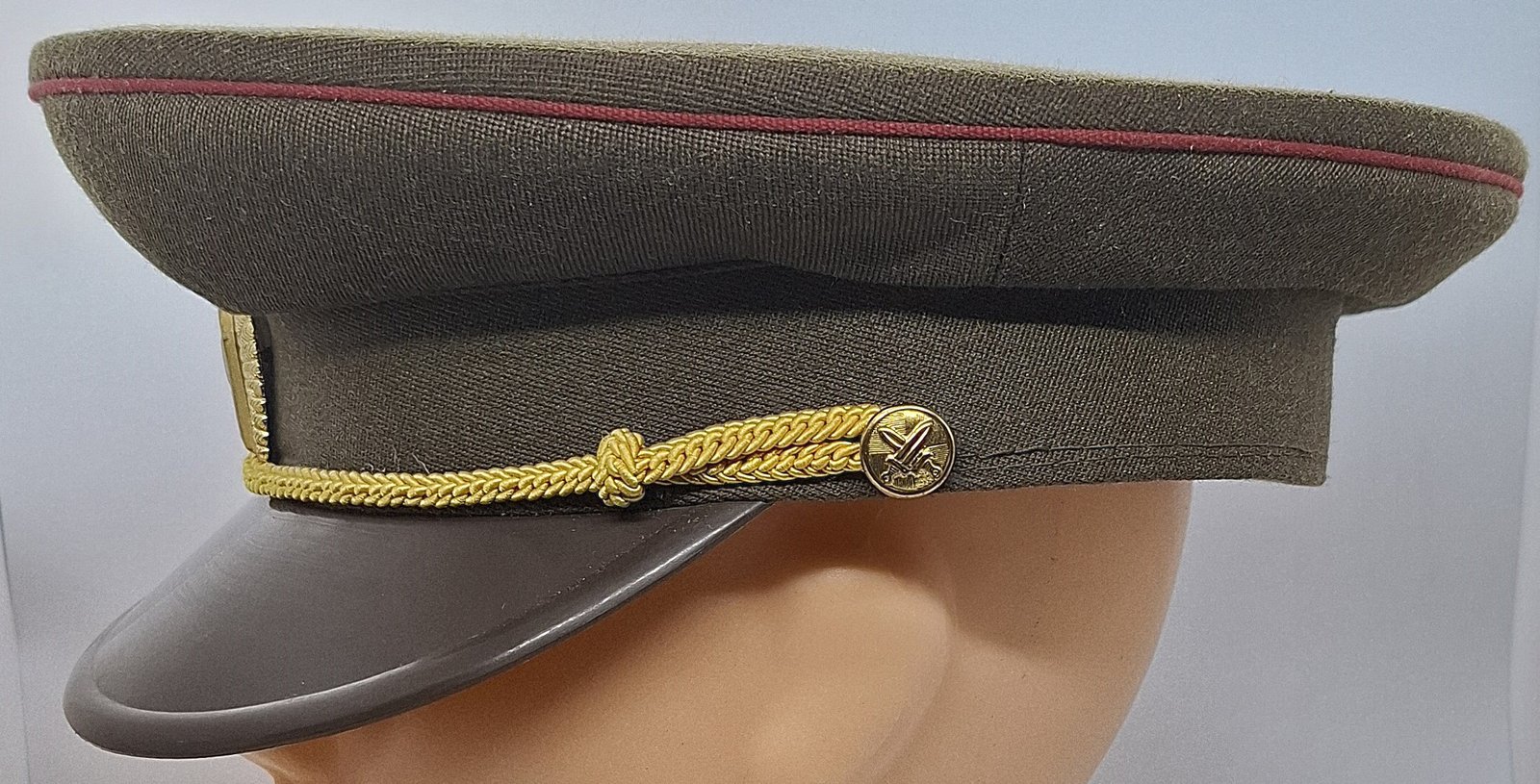 Materiał zasadniczy nieco podobny do tropiku. W dolnej części denka 4 kwatery. W kwaterach brak wietrzników. Denko usztywnione metalową taśmą utrzymującą kształt okręgu. Między denkiem i kwaterami wypustka w kolorze czerwonym. Otok sztywny (tworzywo?). Po obu stronach guziki z charakterystycznymi skrzyżowanymi mieczami, przypinane na metalowe wąsy. Pasek pleciony w formie sznurka, jednoczęściowy, żółty, jednorzędowy - młodszy oficer. Daszek tworzywowy w kolorze brązowym. Wewnątrz atłasowa podszewka w odcieniu materiału zasadniczego ze stemplem producenta i rozmiarem. Potnik z miękkiej skóry w naturalnym, jasnym kolorze, perforowany otworkami w części czołowej. Końce zszyte w tylnej części. Odznaka tłoczona, lakierowana, mocowana na wąsy. Na złotej podkładce - oficer.