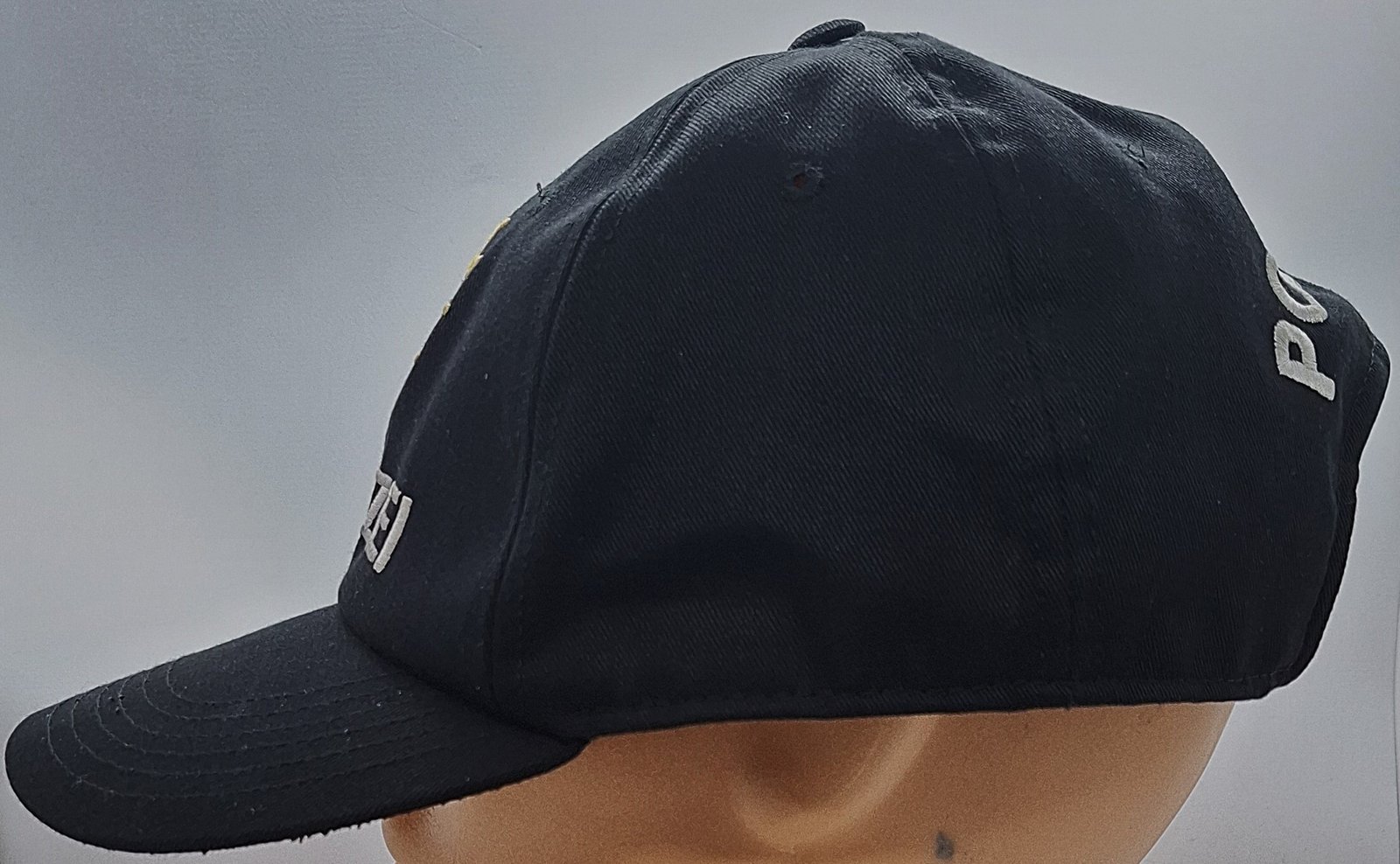 Odznaka i napisy haftowane. Materiał zasadniczy w kolorze czarnym. Czerep zszyty z 6 kwater. W dwóch tylnych okienko z metalowym zatrzaskiem do zmiany rozmiaru typu koperta. Pod dwoma przednimi podszewka usztywniająca. Wietrznik w każdej kwaterze. Potnik włóczkowy(?). Tworzywowe usztywnieni daszku obszyte materiałem zasadniczym z sześcioma przeszyciami.