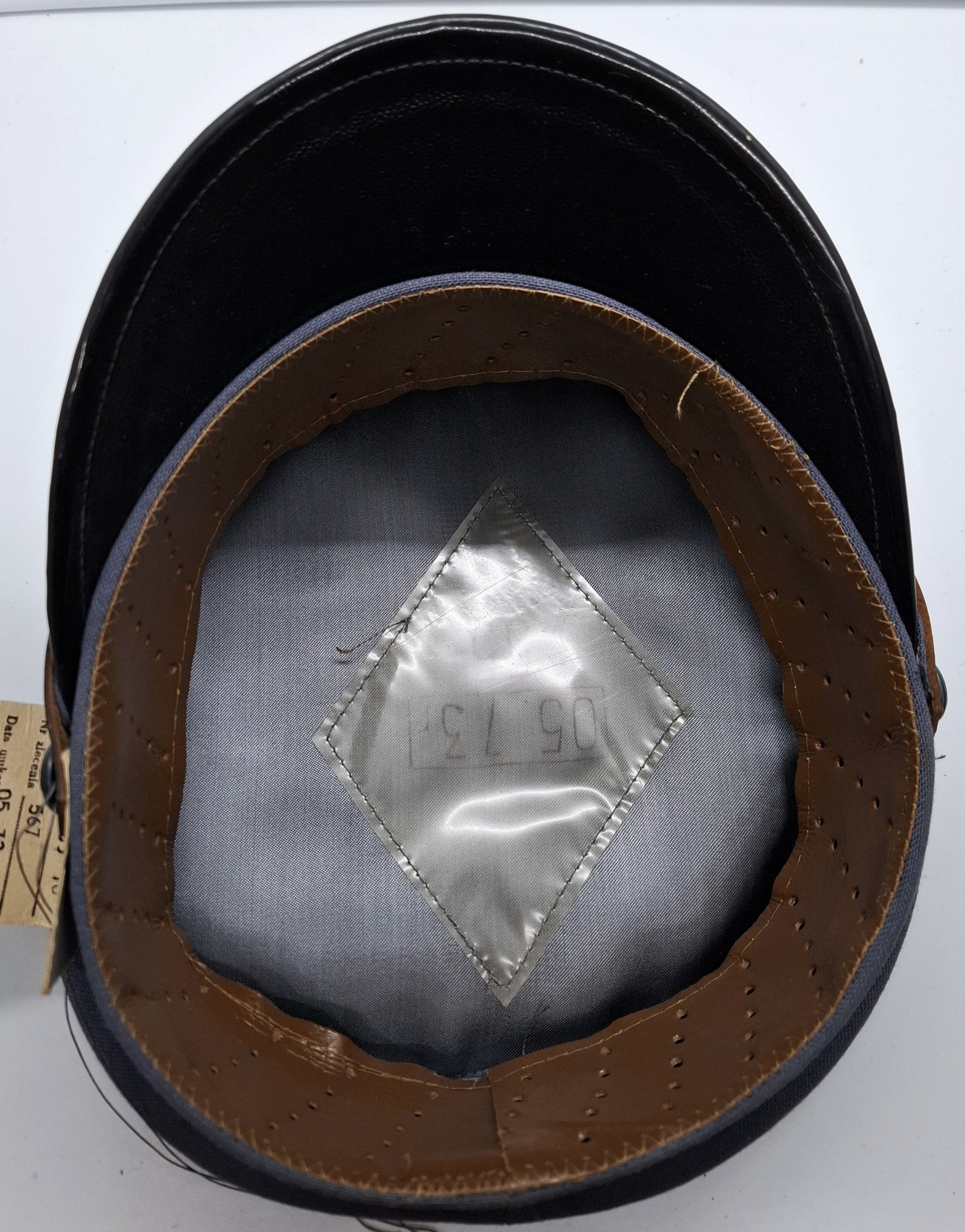 Czapka garnizonowa jest koloru szarobłękitnego. Daszek z tworzywa sztucznego z usztywnieniem i skórzany pasek są koloru czarnego. Klamerka paska w formie prostokąta. Pasek przypięty guzikami z wąsami. Guziki wykonane z tworzywa sztucznego z wizerunkiem orła bez korony wzoru państwowego w odcieniu materiału czapki o średnicy 16 mm. Wewnątrz potnik skórzany perforowany, brązowy z wszytym paskiem materiałowym u krawędzi. Pod potnikiem wbity stempel kontroli jakości. Przednie kwatery usztywnione (w znaczenie mniejszym stopniu niż późniejsze). Reszta wnętrza wyłożona jedwabnym materiałem w odcieniu czapki. W denku, na jedwabnej podszewce, wszyty tworzywowy transparentny rąb zabezpieczający przed potem. Pod nim znajduje się stempel z rozmiarem i datą produkcji (czarny stempel). Rondo czapki napięte jest tworzywowym białym paskiem celulozowym zapewniającym regularny owal. Po bokach, w pobliżu zszycia kwater znajdują się wietrzniki symetrycznie do zszycia (oczka szewskie). Otok w kolorze granatowym, wykonany wg drobnego, jedwabnego splotu. Stopień haftowany bajorkiem. Otok wsparty na czapce ślepą wypustką (dzierga) zabezpieczającą przed zsuwaniem. Orzeł wsparty podpórką z preszpanu obszytego podszewką.