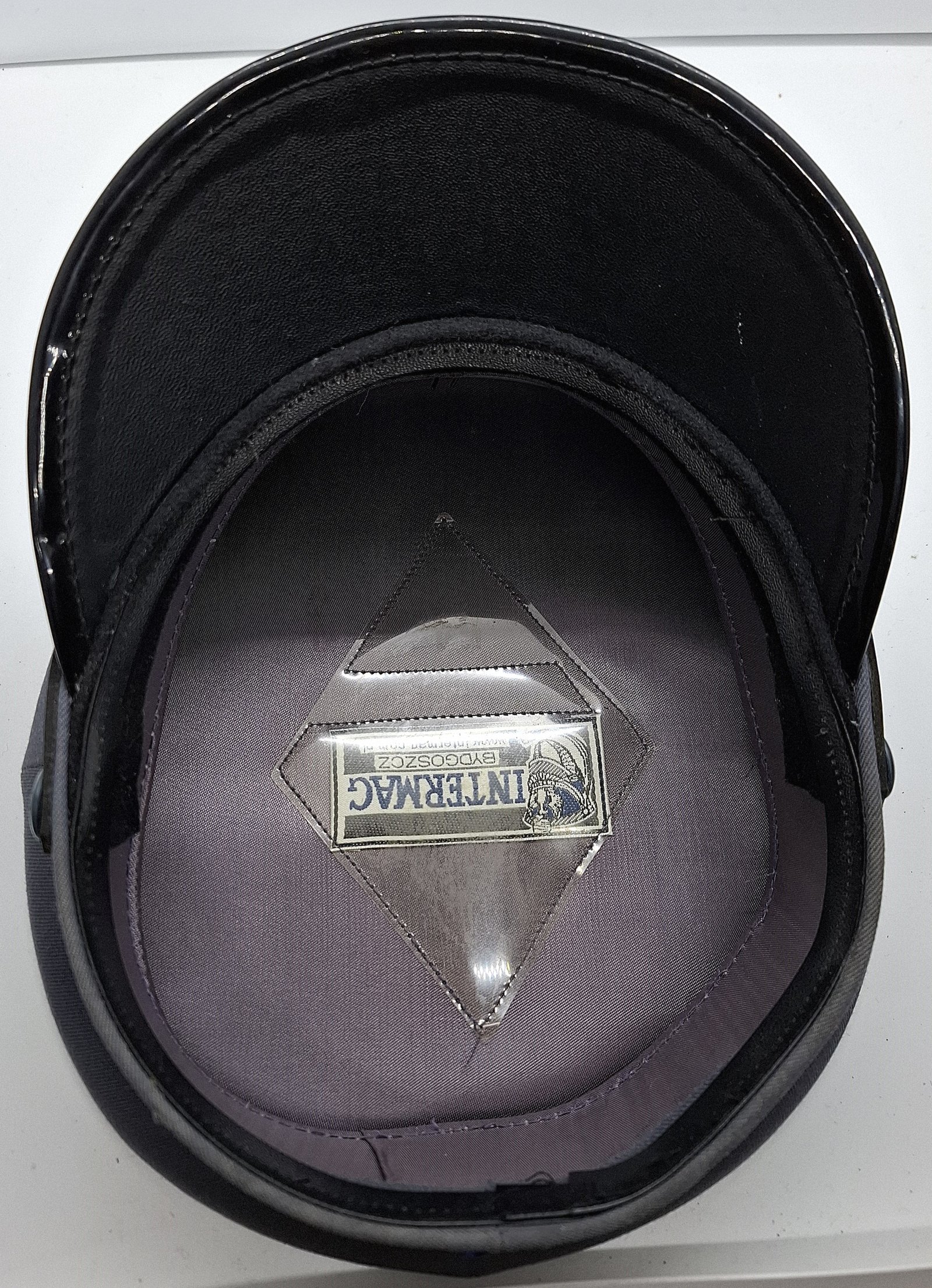 Denko czapki wykonane jest w kształcie okręgu. Do denka przyszyte są cztery kwatery. Przednie kwatery usztywnione od wewnątrz. W pobliżu zszycia przednich i tylnych kwater umieszczone wywietrzniki (oczka szewskie) lakierowane na czarno. Wnętrze denka wyłożone aksamitnym materiałem w odcieniu materiału zasadniczego. Na nim umieszczony jest stempel z rozmiarem i metka. Stempel i metka zasłonięte są foliowym rombem zabezpieczającym denko przed potem. Rant denka usztywniony wewnątrz prętem tworzywowym. Otok czapki sztywny (tworzywowy?). Obszyty materiałem zasadniczym. Wewnątrz odpruty potnik. Na zewnątrz umieszczony otok niebieski z grubego splotu. Na nim naszyty maszynowo stopień srebrną nicią. Po bokach otoku umieszczone guziki wykonane z tworzywa w kolorze granatowym z wąsami metalowymi. Na guzikach wizerunek orła administracyjnego w koronie. Guzikami mocowany jest pasek podbródkowy dwuczęściowy, wąski, łączony na klamerkę metalową, lakierowaną na czarno, prostokątną. Pasek skórzany, czarny z dwoma szlufkami, jedną ruchomą. Pod paskiem przymocowany jest daszek usztywniony tekturą (?). Z góry obłożony gładkim tworzywem, od spodu skóropodobnym. Rant obszyty gładkim tworzywem. W pobliżu rantu srebrny galon. Na połączeniu przednich kwater umieszczony orzełek haftowany srebrnymi i złotymi nićmi na podkładce z materiału zasadniczego. Pod szponami niebieska szarfa z napisem "POLICJA". Orzełek umieszczony na metalowej blaszce, mocowany do czapki metalowymi wąsami.