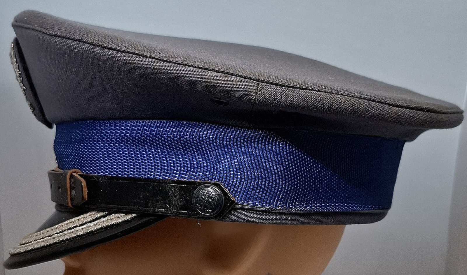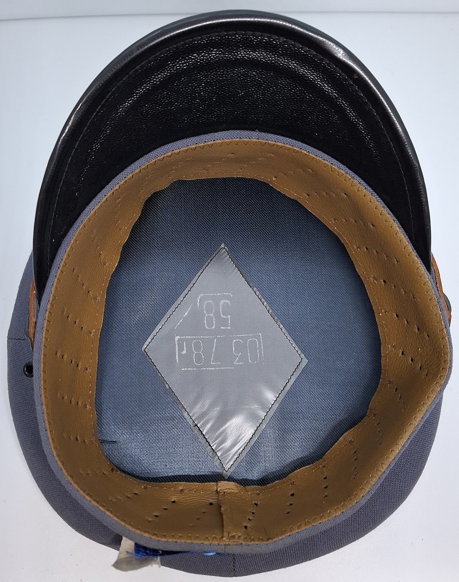 Czapka garnizonowa jest koloru szarobłękitnego. Daszek z tworzywa sztucznego z usztywnieniem i skórzany pasek są koloru czarnego. Klamerka paska w formie prostokąta. Pasek przypięty guzikami z wąsami. Guziki wykonane z tworzywa sztucznego z wizerunkiem orła bez korony wzoru państwowego w odcieniu materiału czapki o średnicy 16 mm. Wewnątrz potnik skórzany perforowany, brązowy z wszytym paskiem materiałowym u krawędzi. Pod potnikiem wbity stempel kontroli jakości. Przednie kwatery usztywnione. Reszta wnętrza wyłożona jedwabnym materiałem w odcieniu czapki. W denku, na jedwabnej podszewce, wszyty tworzywowy transparentny rąb zabezpieczający przed potem. Pod nim znajduje się stempel z rozmiarem i datą produkcji (czarny stempel). Rondo czapki napięte jest tworzywowym prętem zapewniającym regularny owal. Po bokach, w pobliżu zszycia kwater znajdują się wietrzniki symetrycznie do zszycia (oczka szewskie). Otok w kolorze granatowym, wykonany wg drobnego, jedwabnego splotu. Stopień haftowany bajorkiem. Otok wsparty na czapce ślepą wypustką (dzierga) zabezpieczającą przed zsuwaniem. Orzeł wsparty podpórką z preszpanu obszytego podszewką.