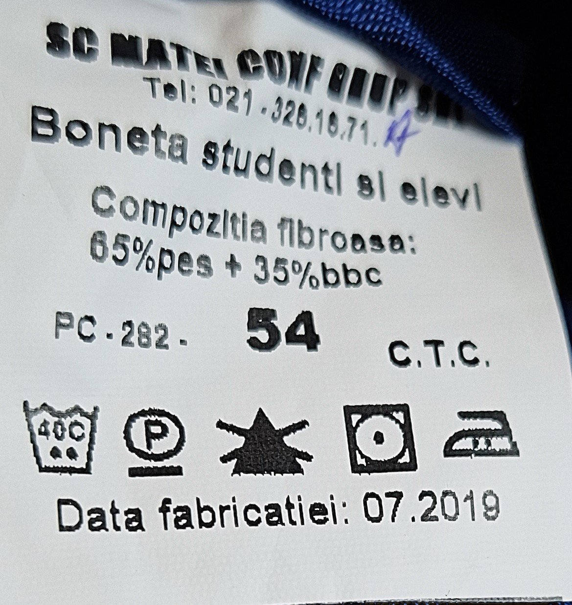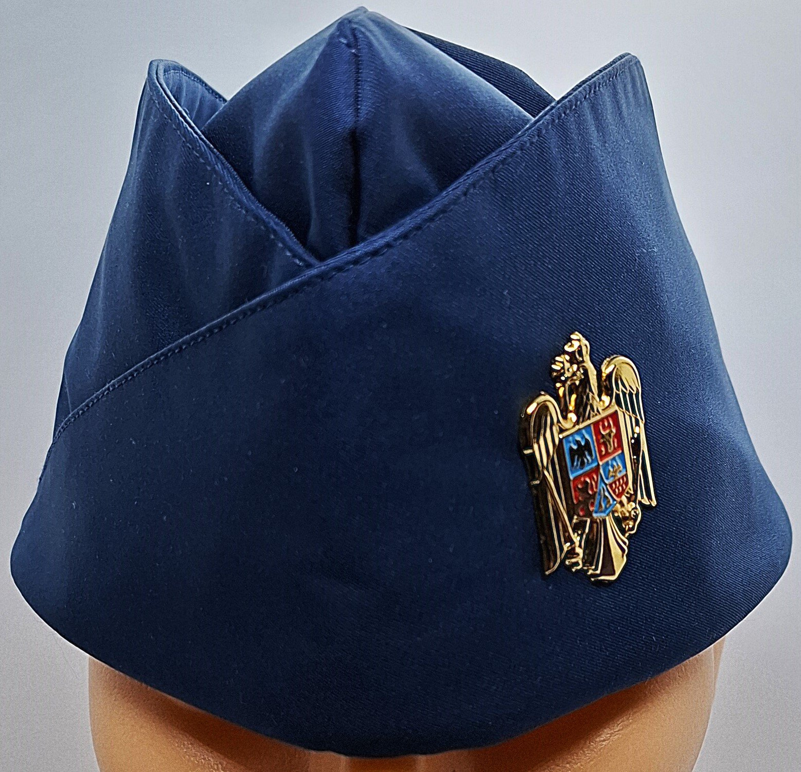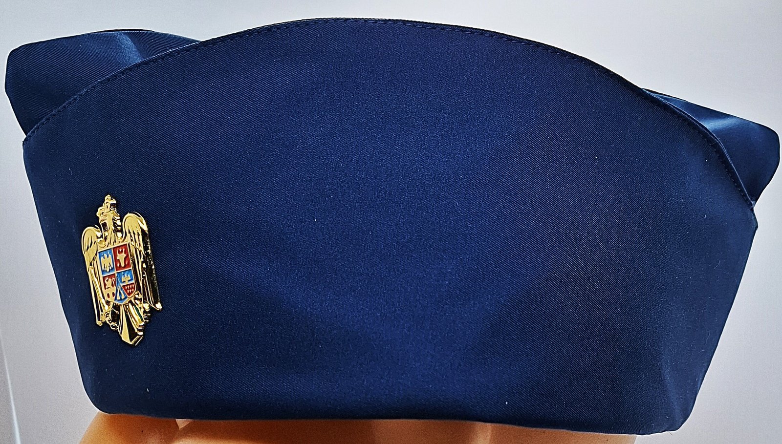 Materiałem zasadniczym jest tkanina poliestrowo-bawełniana (65%+35%). Specyficzna w dotyku, niemal jak rodzaj zamszu,koloru niebieskiego. Furażerka złożona jest z dwóch kwater wewnętrznych i dwóch kwater zewnętrznych. W przedniej części furażerki lewa część kwatery zewnętrznej naszyta jest na prawą część kwatery zewnętrznej (bardzo głęboko). Wewnątrz wszyta jest atłasowa podszewka w kolorze materiału zasadniczego. Wewnątrz do kwater przyszyty jest potnik z materiałowej taśmy w kolorze materiału zasadniczego, podszyty fizeliną. Do kwatery lewej, zewnętrznej, w przedniej części zamocowany jest na wąsy emblemat w postaci metalowego herbu Rumunii. Jest to herb Rumunii obowiązujący od 2016 (dodana korona).