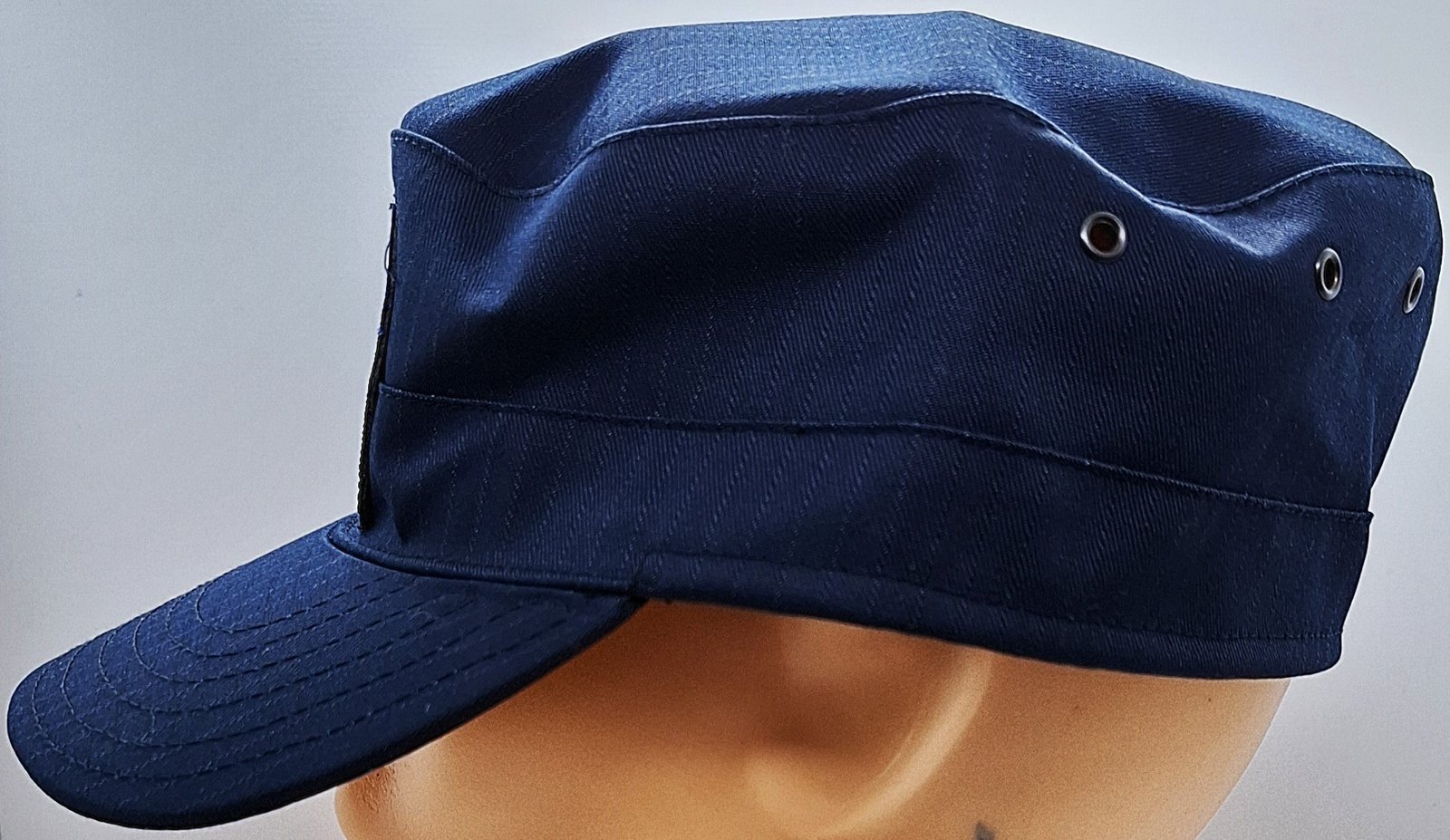 Czapka w formie kepi. Materiałem zasadniczym jest tkanina ripstop w kolorze granatowym. Denko owalne, otok jednoczęściowy, zszyty z tyłu. Na otoku sześć wietrzników metalowych, lakierowanych na kolor materiału zasadniczego. W dolnej części otoku naszyty drugi pasek materiału zasadniczego. Wewnątrz brak podszewki. Potnik z materiału zasadniczego, jedynie w przedniej części. Metka producenta, rozmiaru i daty w tylnej części w zszyciu otoku. Na metce stempel "C.T.C.4" - Controlul Tehnic de Calitate, rumuński znak kontroli jakości. Daszek sztywny, obszyty materiałem zasadniczym, przeszyty sześć razy. Odznaka haftowana na podkładce z materiału w kolorze ciemniejszym, granatowym. W miejscu odznaki brak usztywnienia.