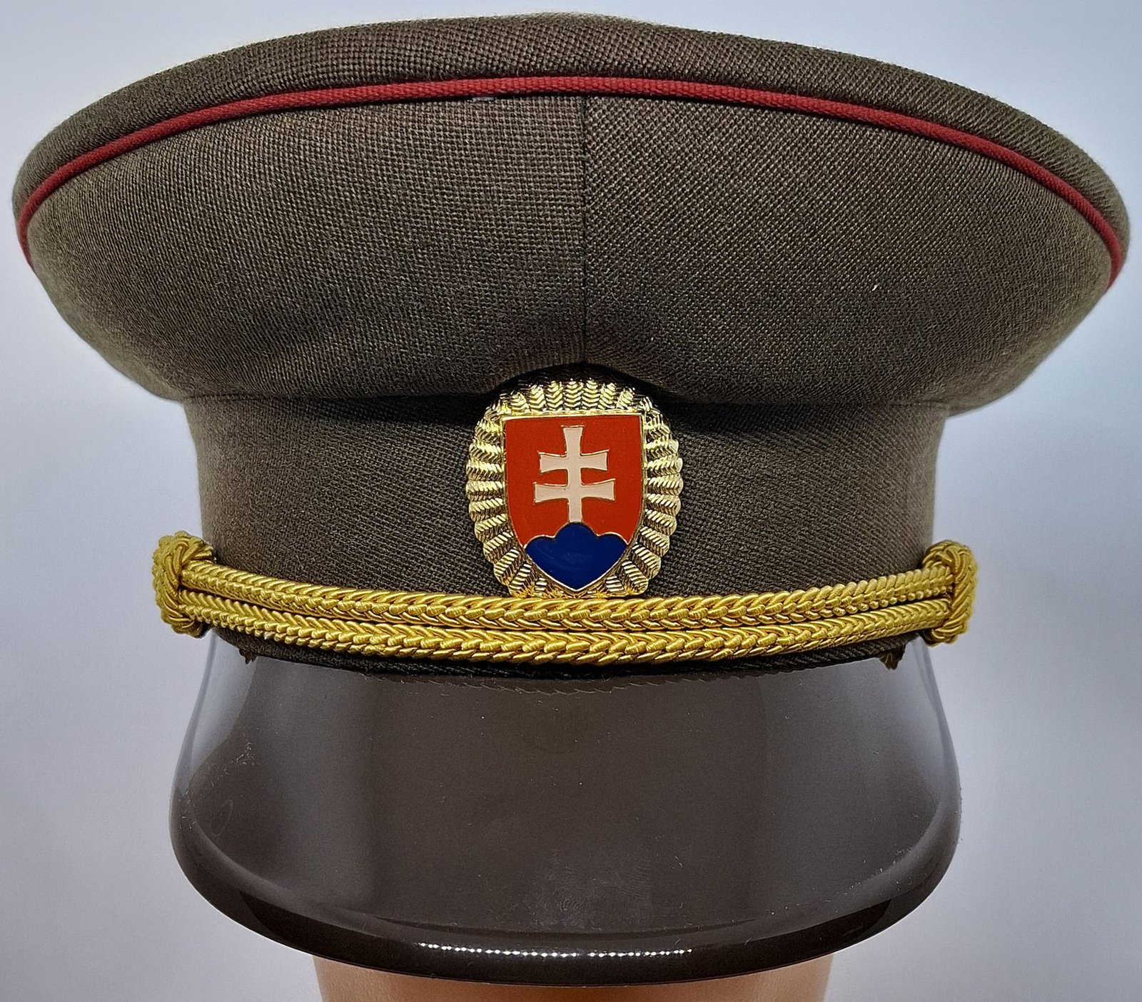 Materiał zasadniczy nieco podobny do tropiku. W dolnej części denka 4 kwatery. W kwaterach brak wietrzników. Denko usztywnione metalową taśmą utrzymującą kształt okręgu. Między denkiem i kwaterami wypustka w kolorze czerwonym. Otok sztywny (tworzywo?). Po obu stronach guziki z charakterystycznymi skrzyżowanymi mieczami, przypinane na metalowe wąsy. Pasek pleciony w formie sznurka, jednoczęściowy, złoty - straszy oficer. Daszek tworzywowy w kolorze brązowym. Wewnątrz atłasowa podszewka w odcieniu materiału zasadniczego ze stemplem producenta i rozmiarem. Potnik z miękkiej skóry w naturalnym, jasnym kolorze, perforowany otworkami w części czołowej. Końce zszyte w tylnej części. Odznaka metalowa z herbem armii słowackiej w kolorze złotym, mocowana na wąsy - wczesny wzór.