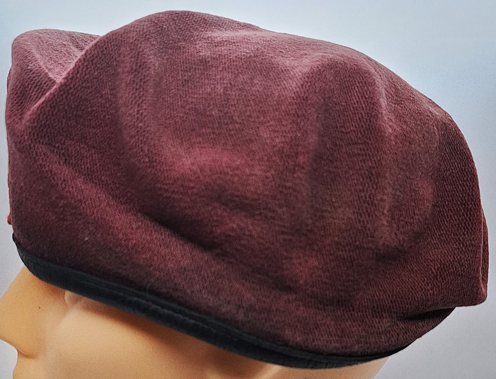 Beret tłoczony maroon. Pod flashem tworzywowe usztywnienie. Wewnątrz podszewka wycięta. Lamówka skórzana.