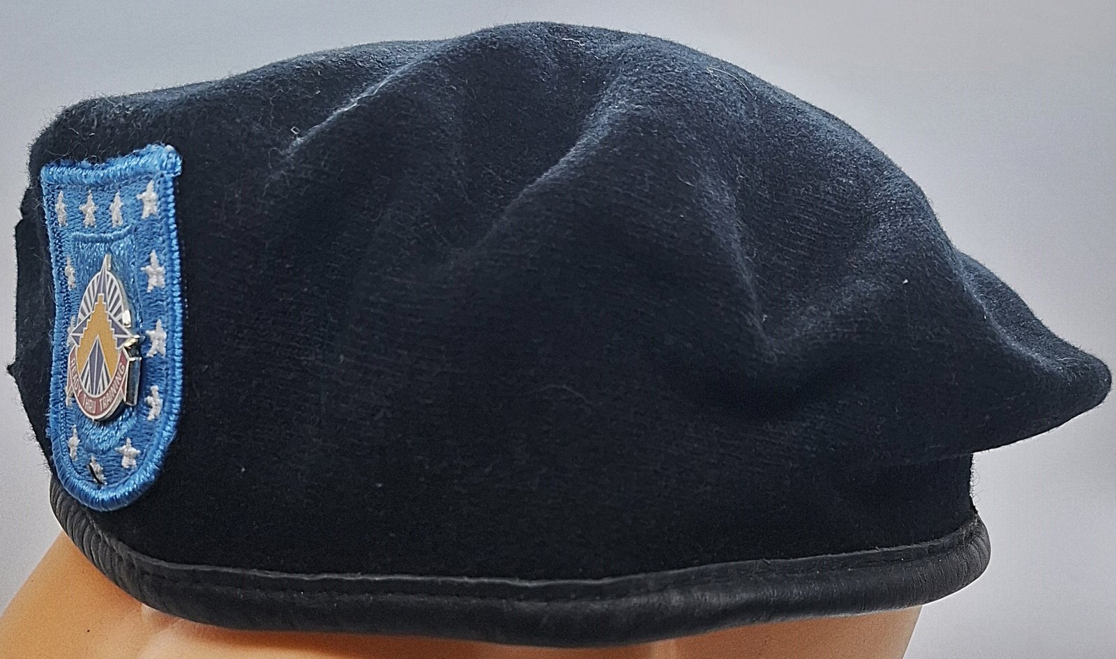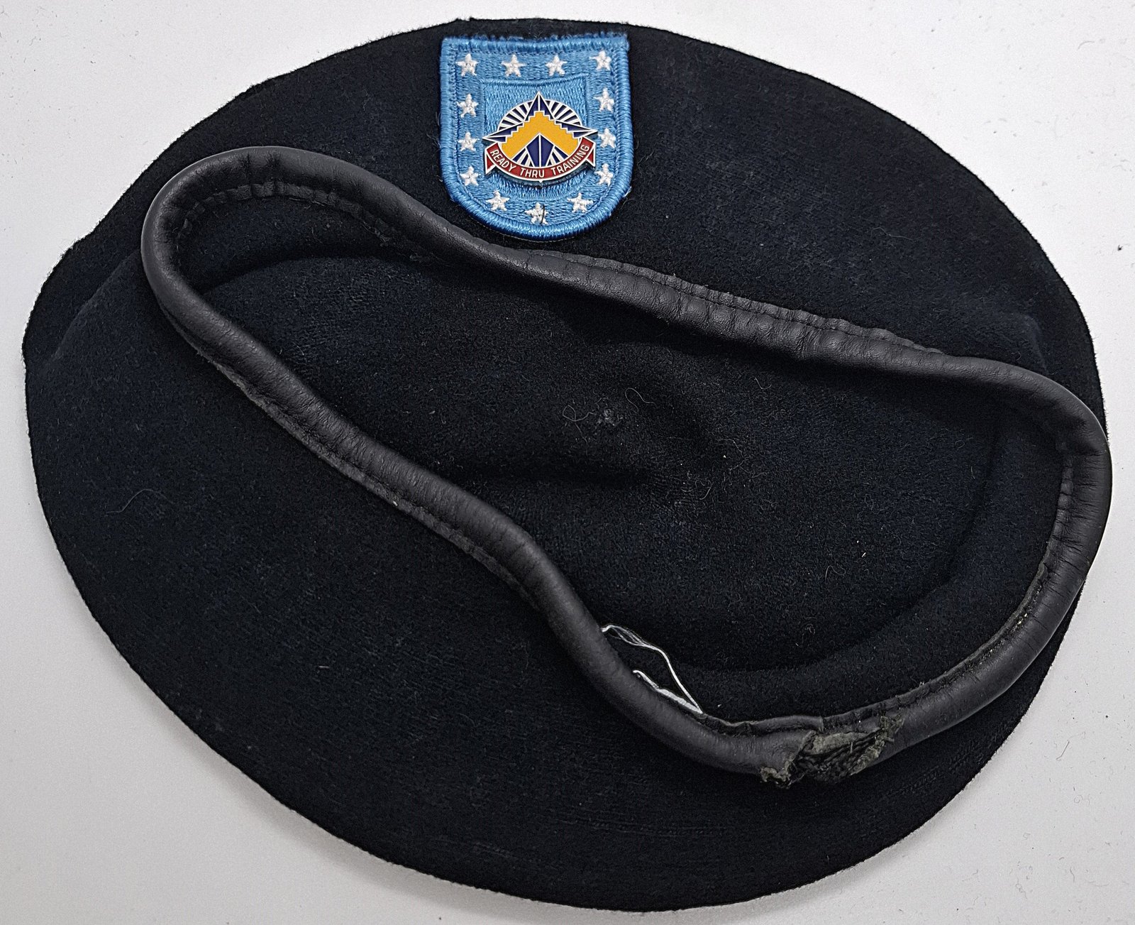 Beret tłoczony. Pod flashem tworzywowe usztywnienie. Wewnątrz podszewka wycięta. Lamówka materiałowa z materiałową tasiemką do regulacji rozmiaru. Crest z napisem "ready thru training" - "gotowy poprzez szkolenie".