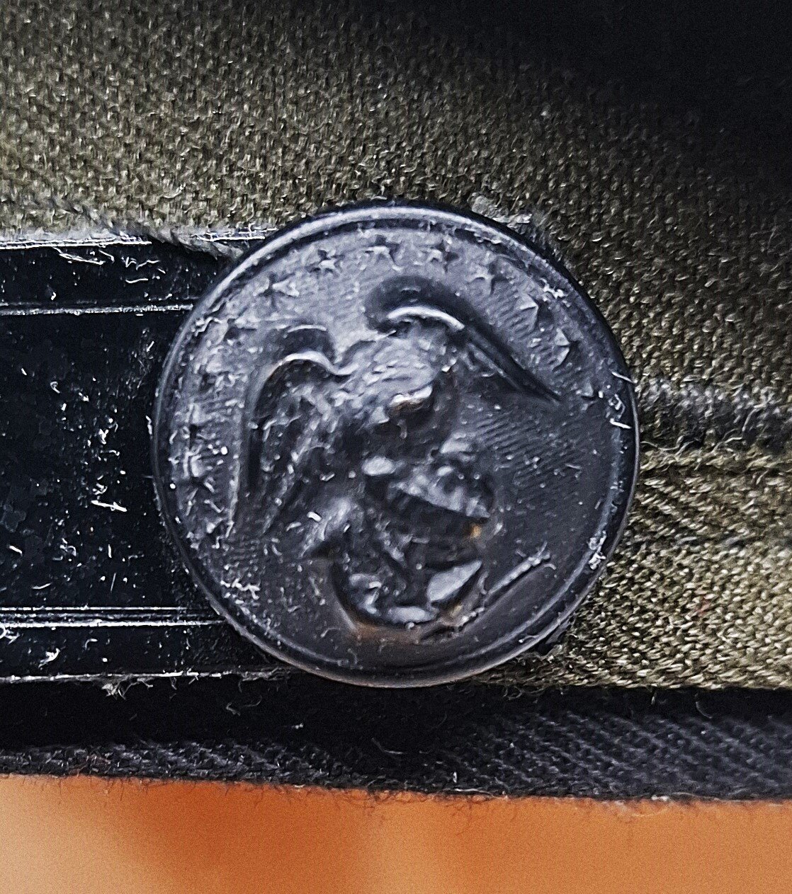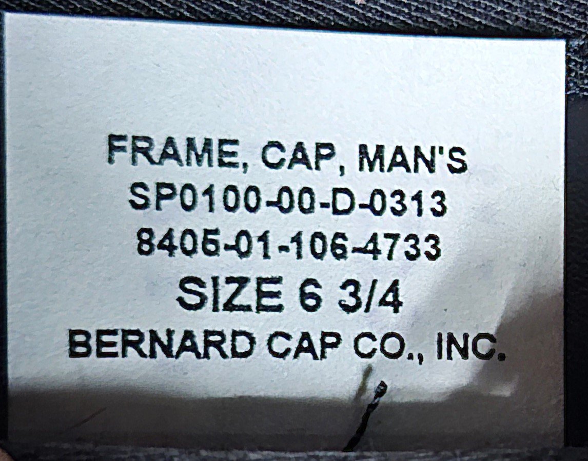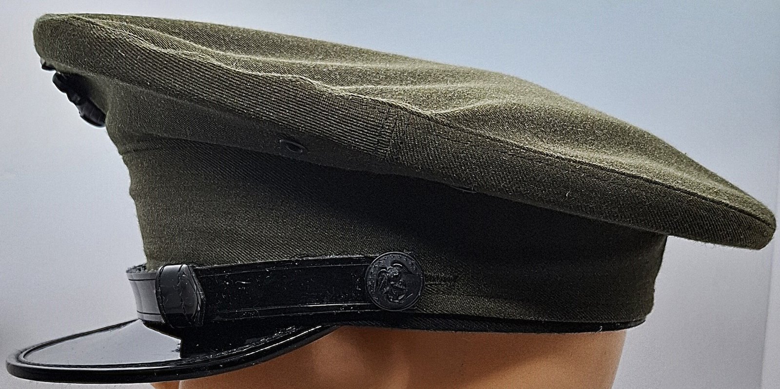 Czapka do munduru service "A" - Alpha. Materiał zasadniczy splotem podobny do gabardyny (jednak nieco cieńszy). Denko, kwatery i opaska na otok tworzą zdejmowalną część czapki nazywaną "green service cover kit". Nakładany jest na metalowy stelaż czapki - frame. Otok obszyty czarnym materiałem. Potnik ze skóry. Denko usztywnione tworzywowym paskiem. Pod odznaką metalowa szyna usztywniająca przednią część czapki. Daszek sztywny, obłożony gładkim tworzywem od góry i porowatym od spodu. Rant obszyty tworzywowym paskiem. Pasek ze sztucznej skóry, czarny. Składa się z dwóch części gdzie jedna strona przymocowana jest guzikiem, a druga posiada wsuwkę do regulacji długości. Guziki metalowe umieszczone po obu stronach czapki. Mocowane na słupek. Na guzikach widnieje orzeł siedzący na kotwicy. Odznaka mocowana na słupek.