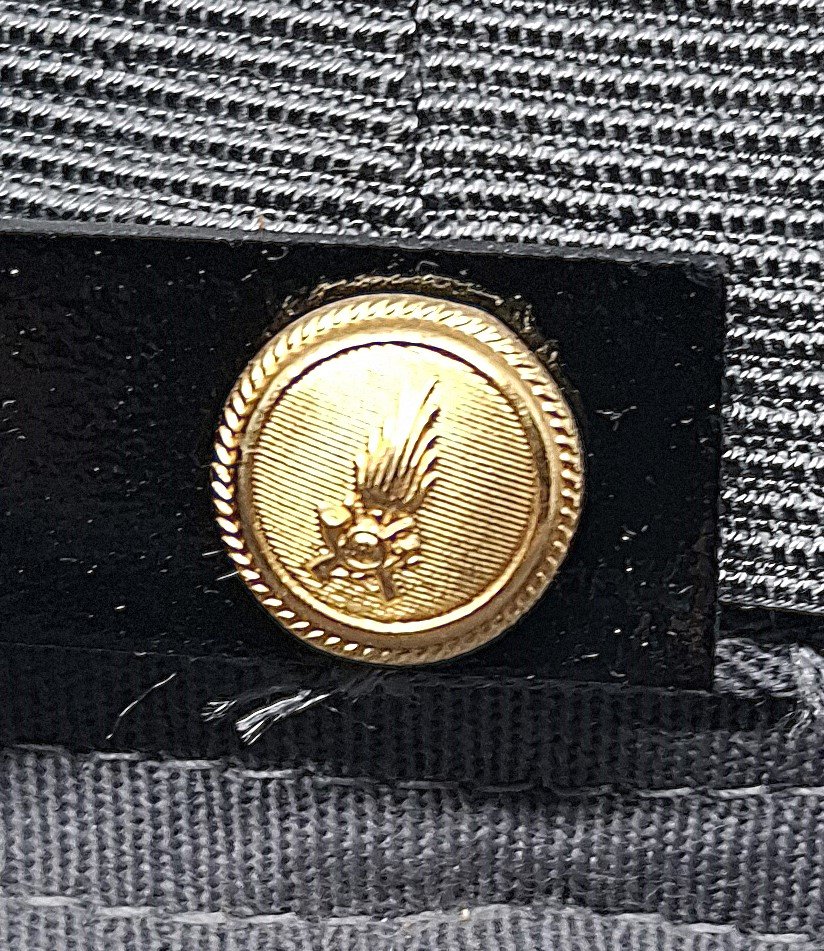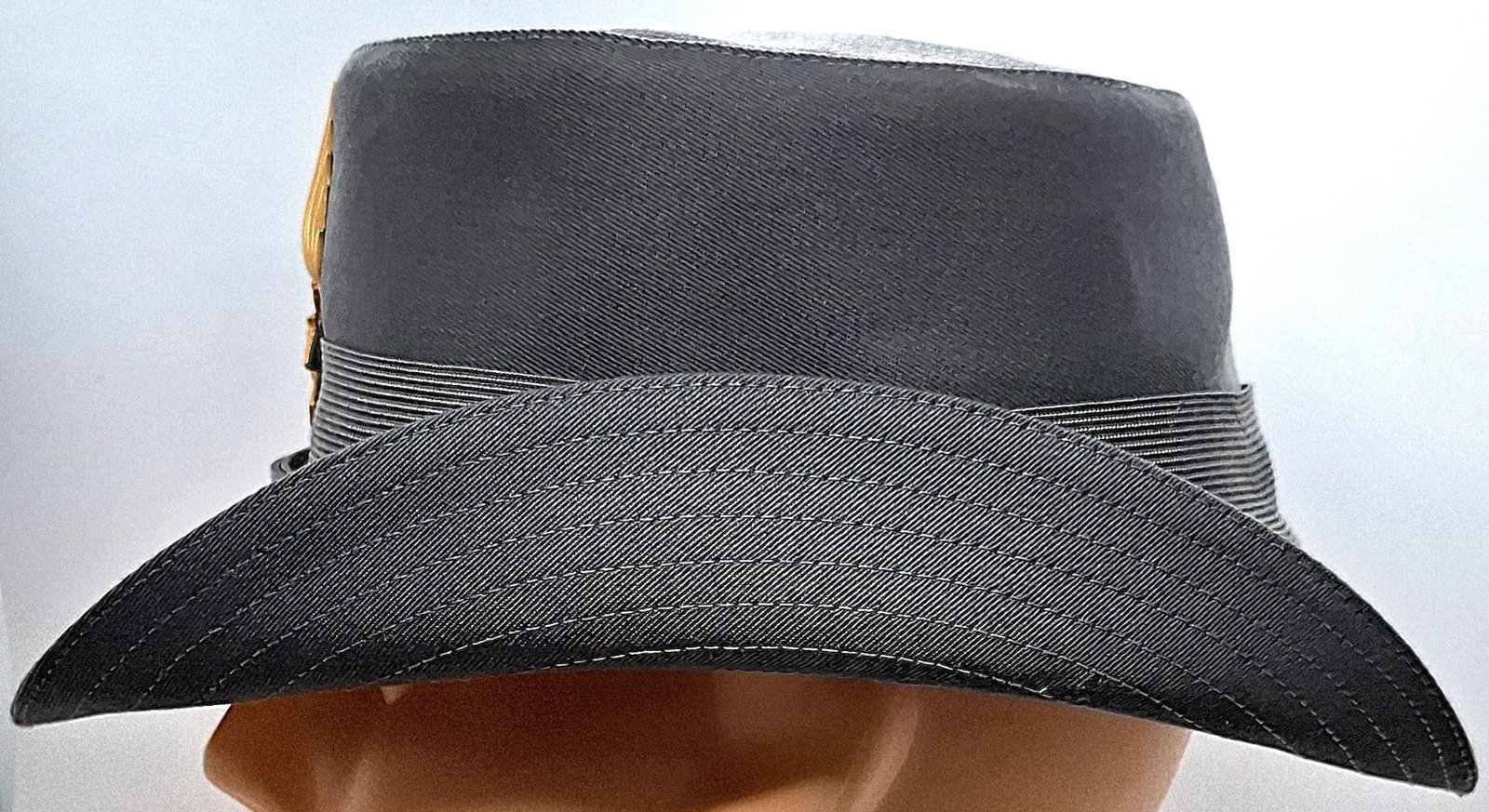 Tkanina zasadnicza podobna do polskiej gabardyny. Denko płaskie, owalne. Otok zszyty w tylnej części. Rondo wywinięte ku górze, przeszyte dziewięciokrotnie. W dolnej części ronda taśma otokowa. Pasek podbródkowy skórzany, czarny, regulowany wsuwkami, przypięty guzikami mocowanymi na wąsy. Guziki przetłoczone z wizerunkiem odznaki formacji. Wewnątrz atłasowa podszewka w kolorze kremowym. W denku nadruk producenta. Potnik skórzany koloru czarnego. W przedniej części odznaka metalowa, tłoczona, mocowana na metalowe wąsy.