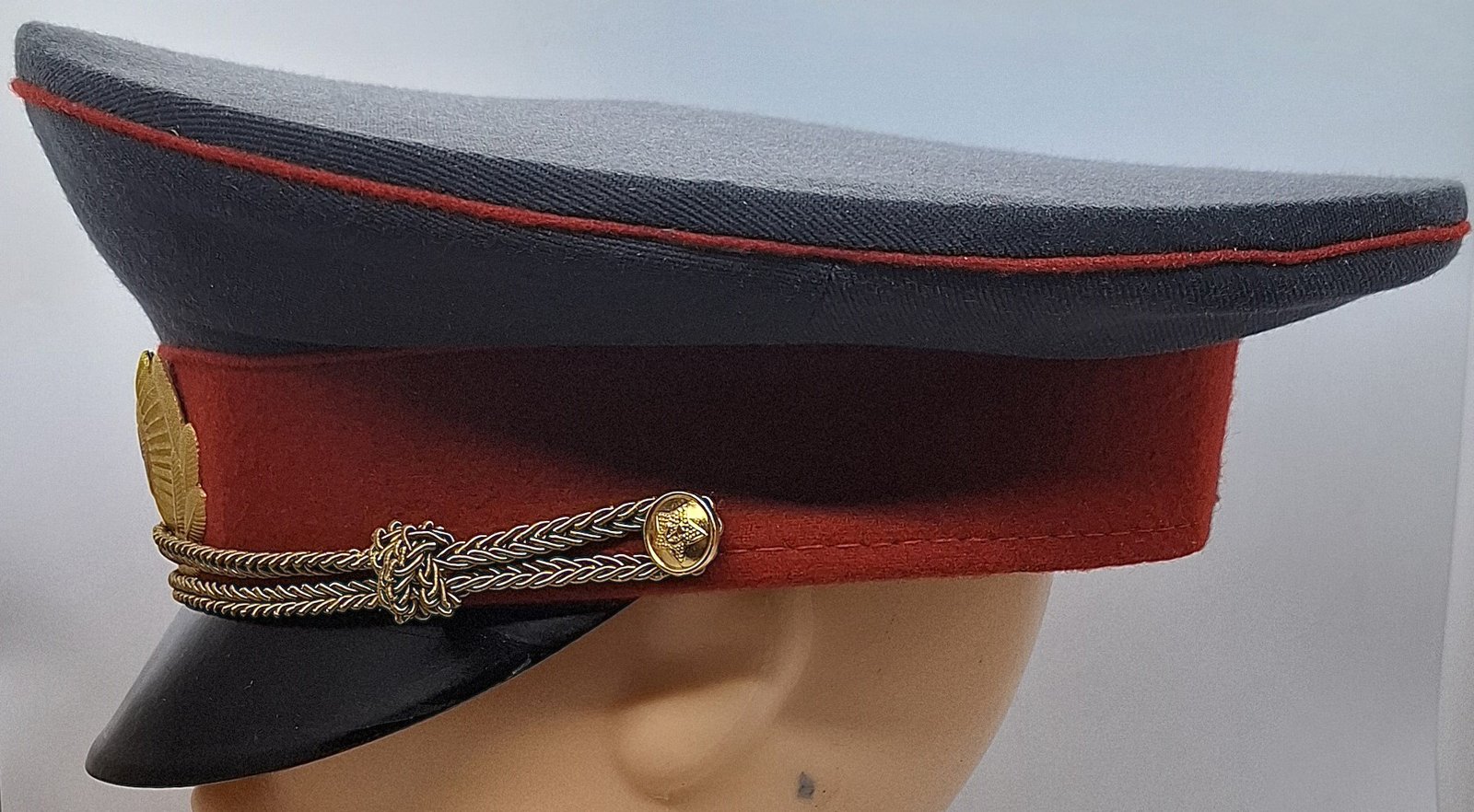 Milicja w ZSRR powołana została w 1917 i przemianowana na milicję rosyjską w 1991. Czapka oficera (niższego?), podoficerów i szeregowych, paradna.
