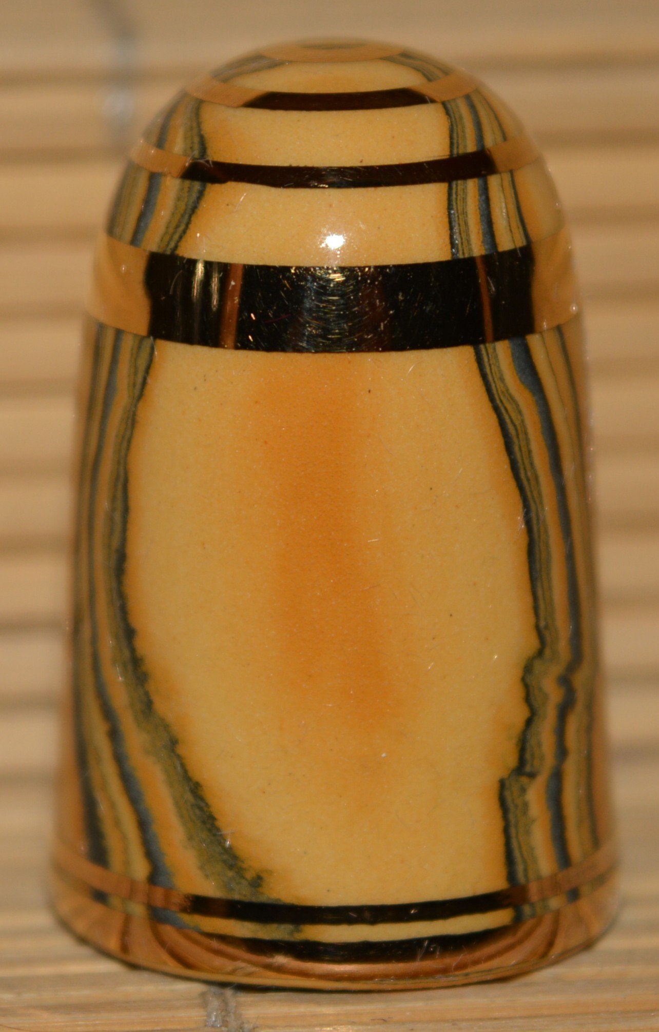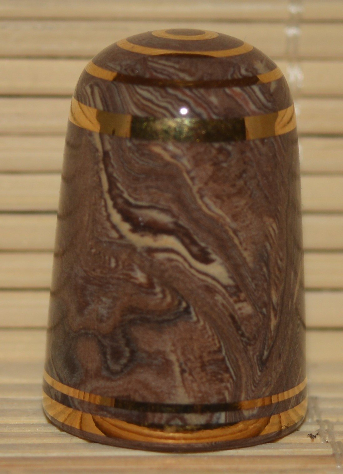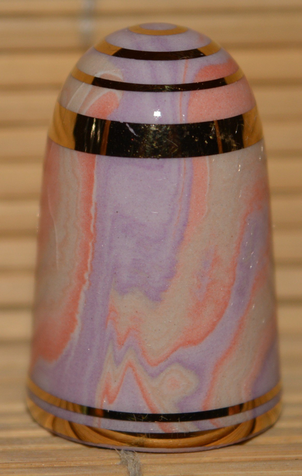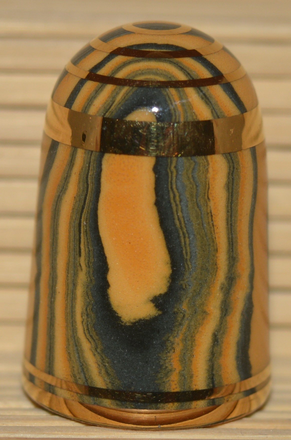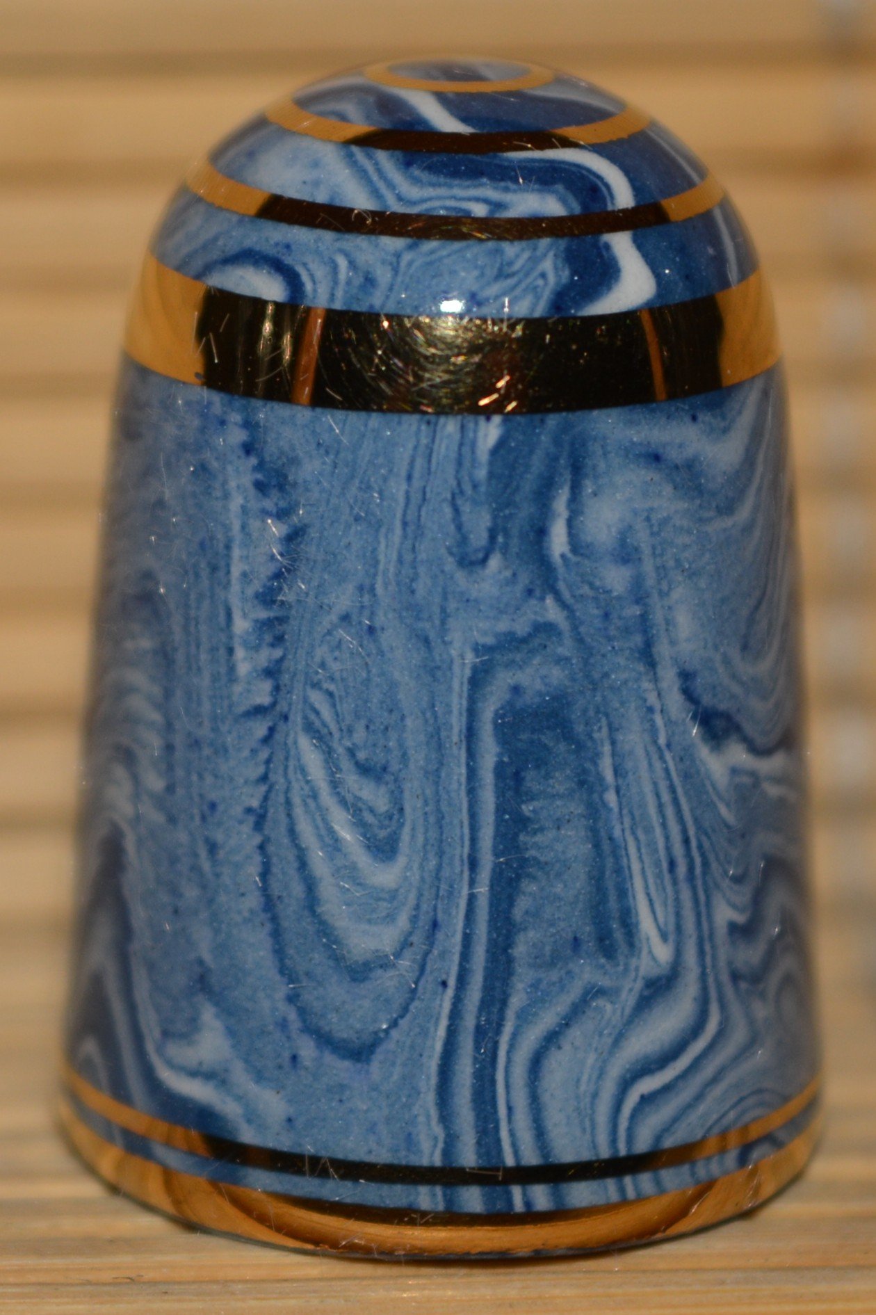 Agateware Tony Bouchet.Kolekcja naparstków wytworzona przez Tony Boucheta. Tony Bouchet stworzył materiał ceramiczny wyglądem przypominający naturalny agat a w rzeczywistosci jest to glina mieszana z tlenkami metali.Pierwsze wyroby z agateware powstały w 1984 r. Po wycofaniu się z biznesu w 2011 roku Bouchet zniszczył wszystkie materiały , receptury i sprzęt. Naparstki Tony Boucheta są unikatowe.