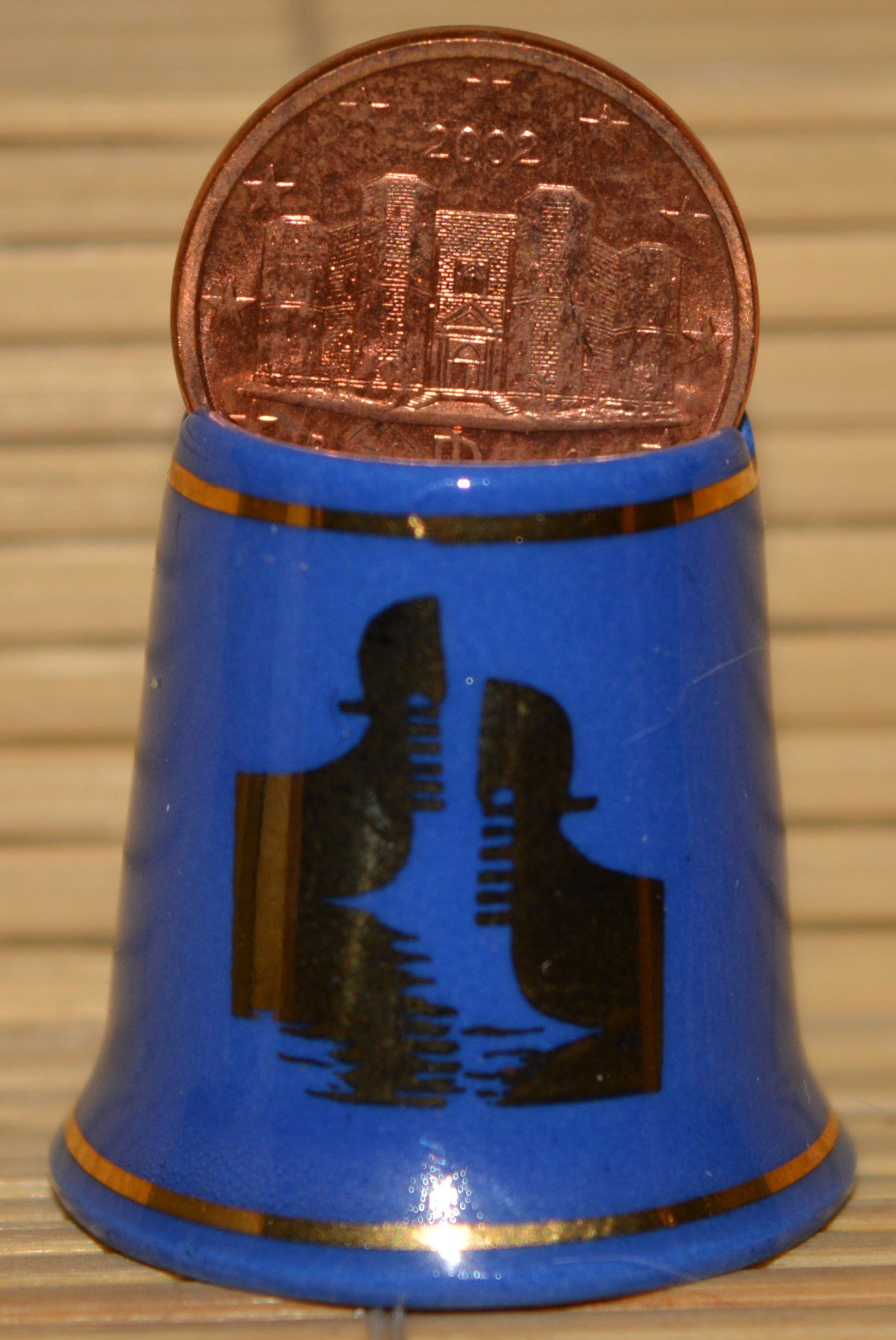 Naparstki ozdobione symbolem Unii Europejskiej i motywem charakterystycznym dla danego państwa