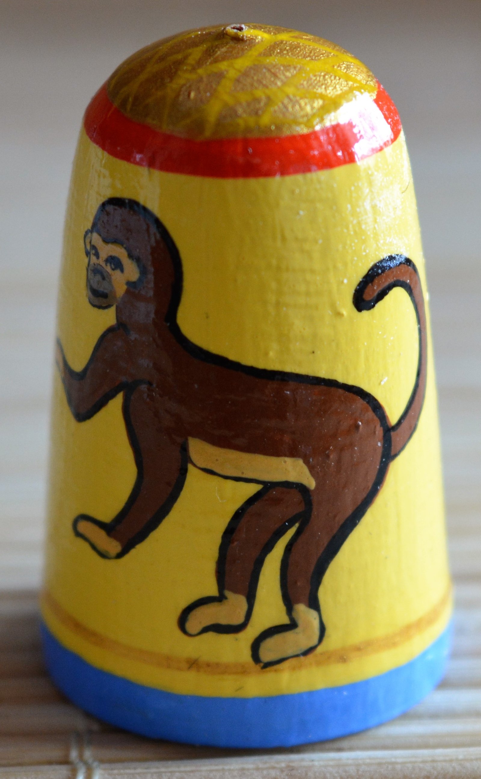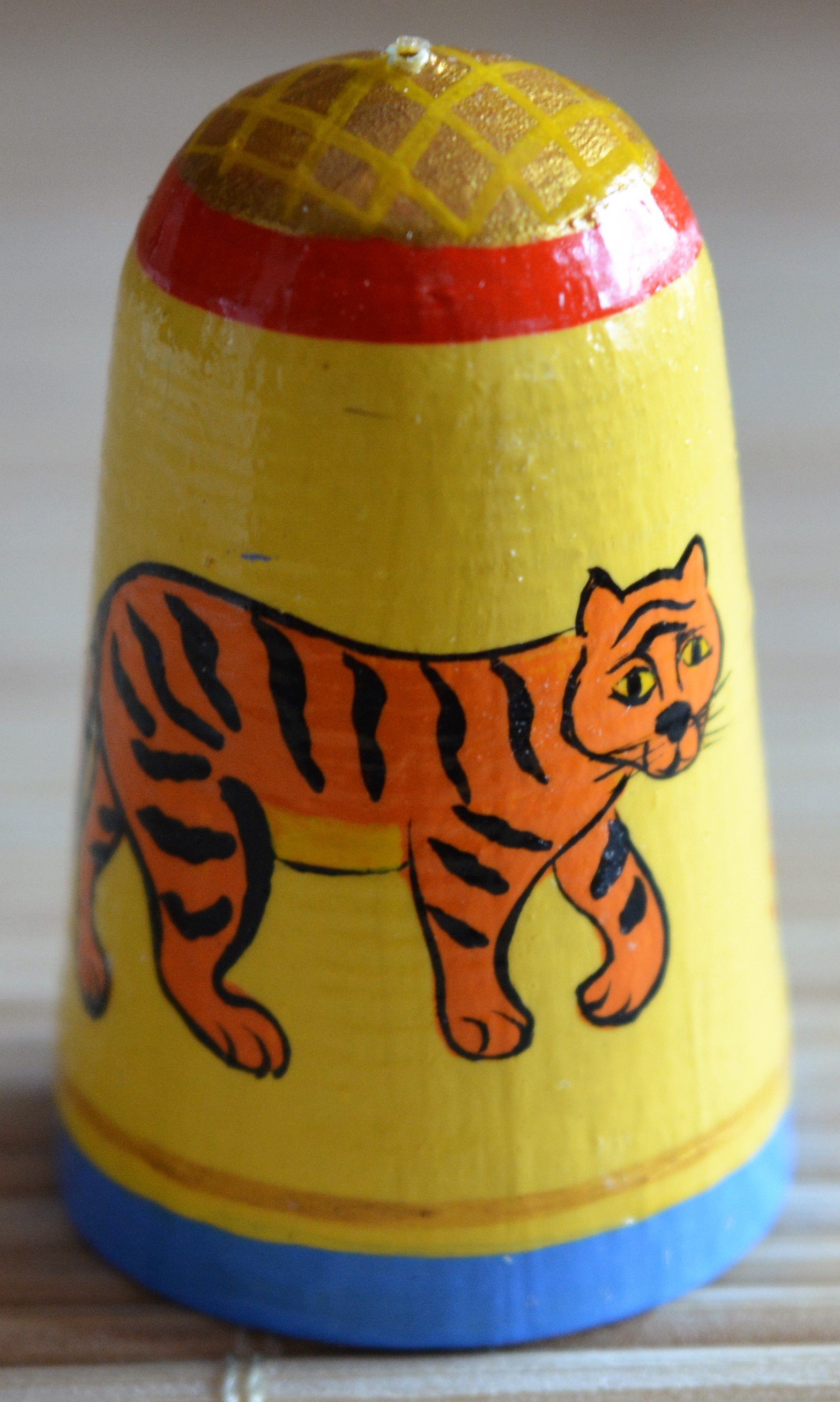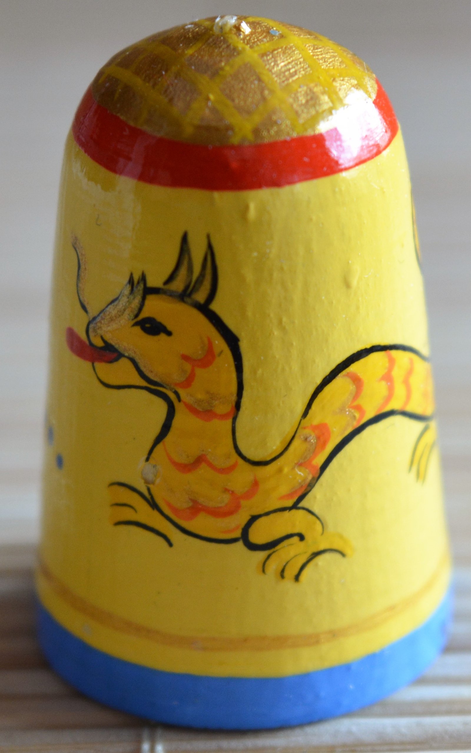Rosja , twórca Valentina Razarenowa z Ufy. Chińskie znaki zodiaku. Naparstki drewniane , ręcznie malowane.