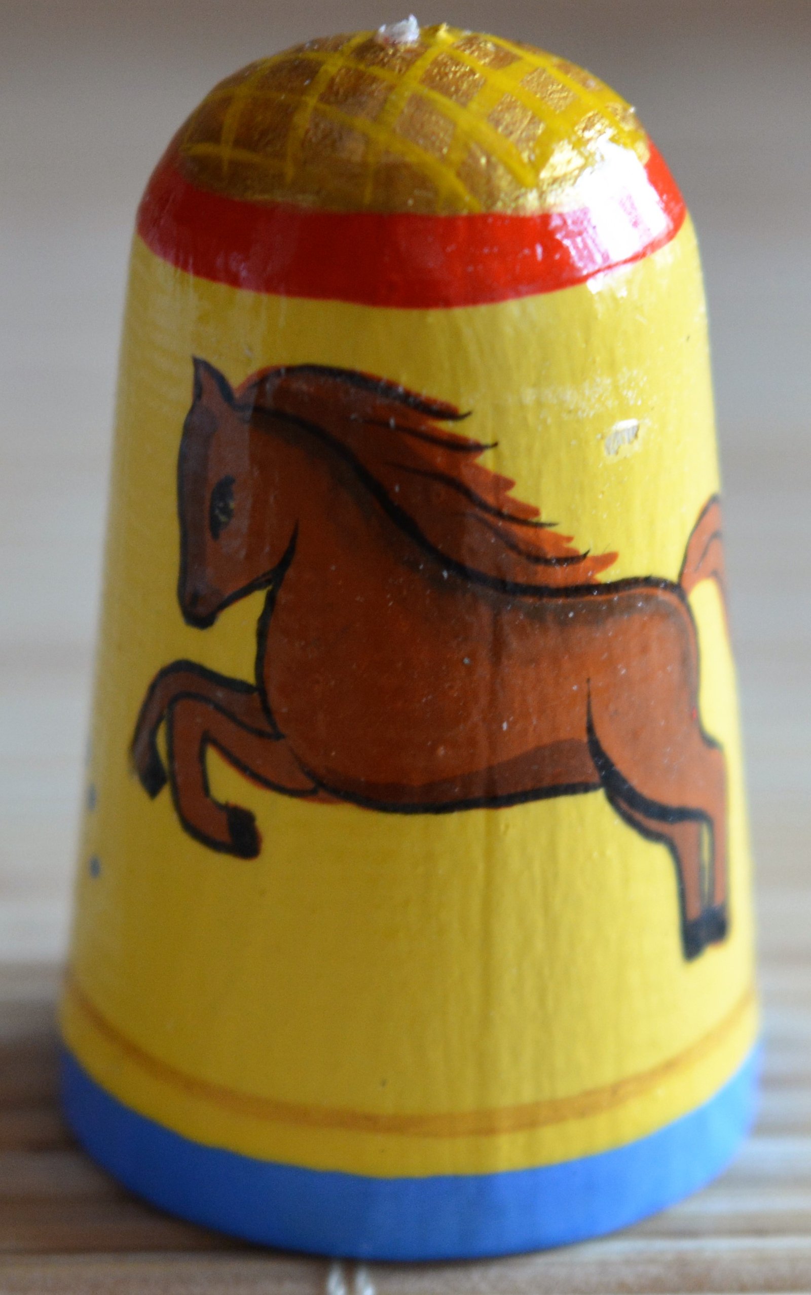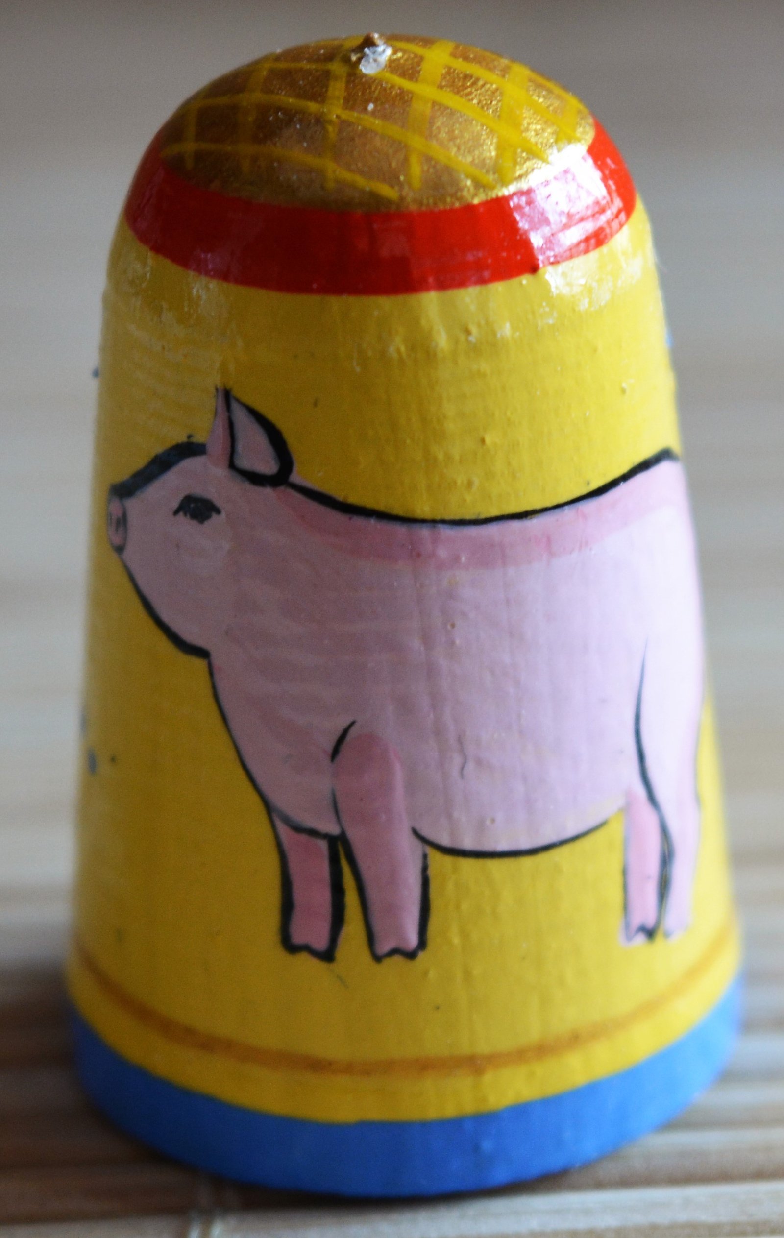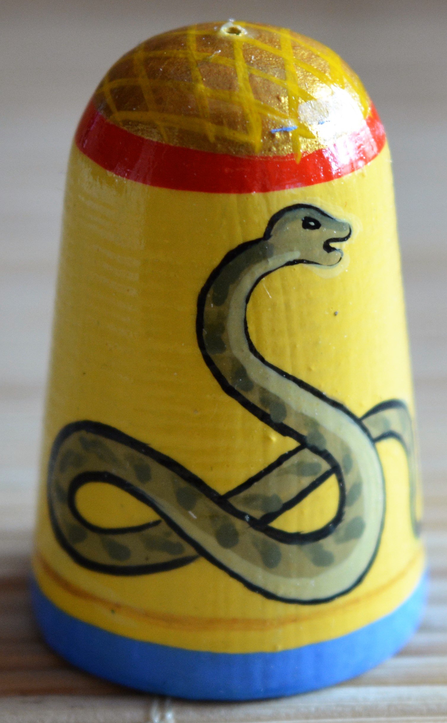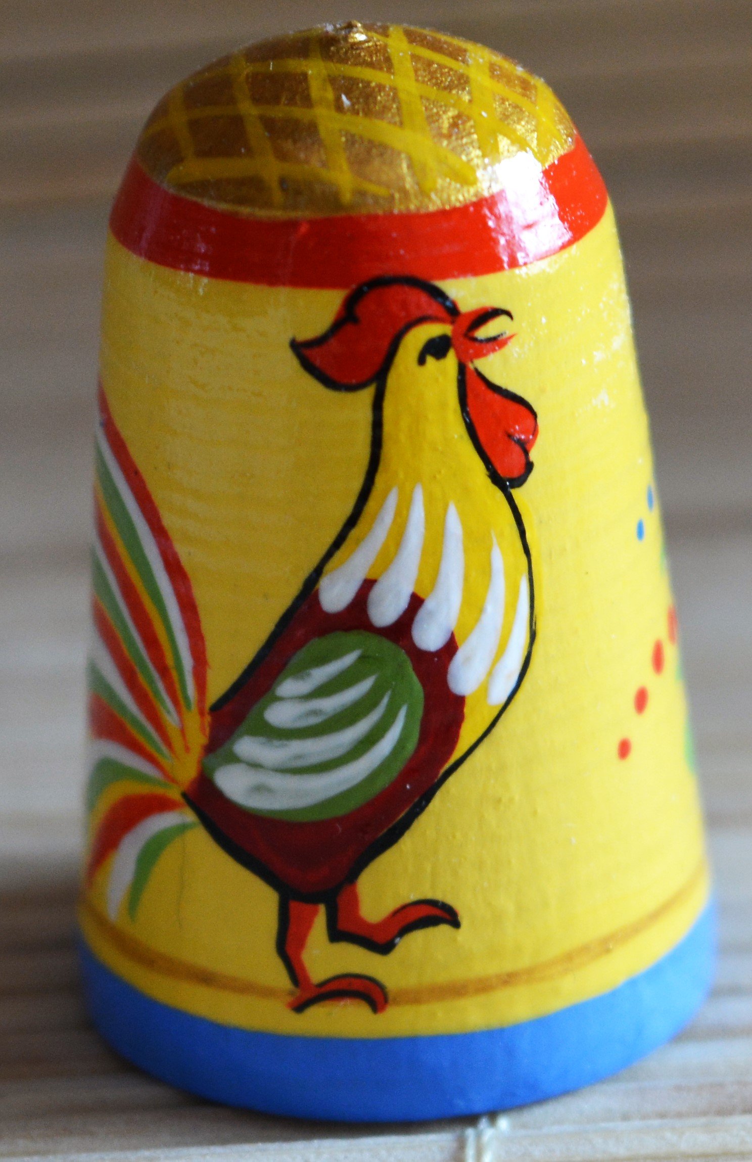 Rosja , twórca Valentina Razarenowa z Ufy. Chińskie znaki zodiaku. Naparstki drewniane , ręcznie malowane.