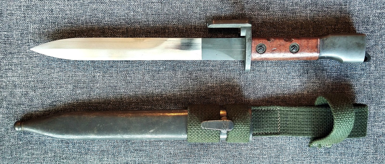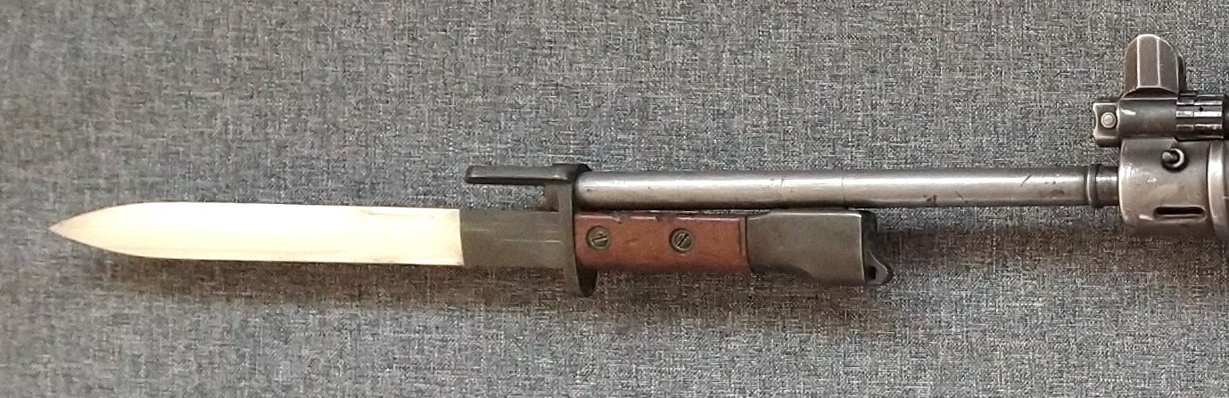 Pierwszy i zarazem bardzo ciekawy konstrukcyjnie typ bagnetu do belgijskiego karabinu samopowtarzalnego / samoczynnego FN FAL (znany obecnie także jako „Model A”).