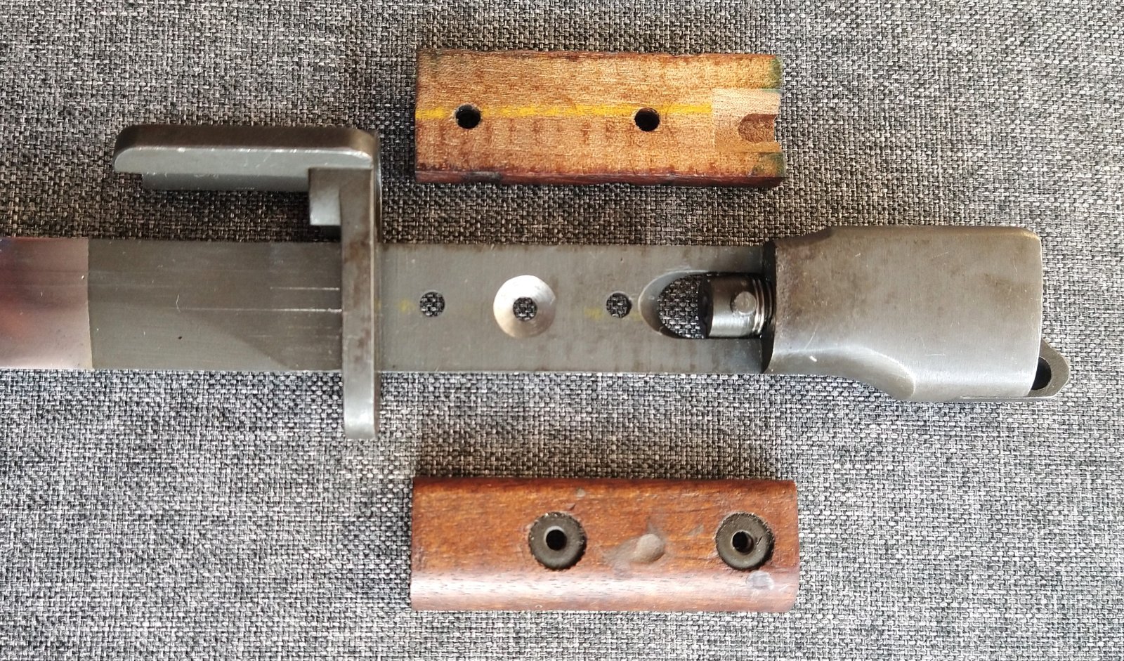 Poza niewielkimi ubytkami na okładzinach, bagnet jest w stanie idealnym.