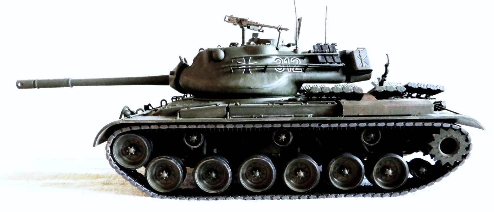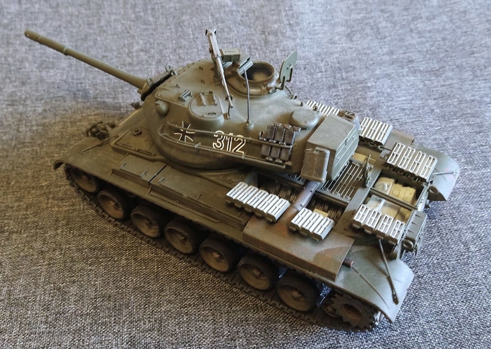 Czołg M47G używany w wojskach lądowych RFN (Bundeswehr Heer), rok 1960. Pojazd w oznakowaniu 3 Kompanie, 204 Panzer Battalion (stacjonujący w Hemer, Nadrenia), 2. Panzergrenadierdivision. Model pokazany jest z otwartymi pokrywami przedziału napędowego i widocznym silnikiem Continental AV-1790-5B V12 oraz transmisją Allison CD-850-4.