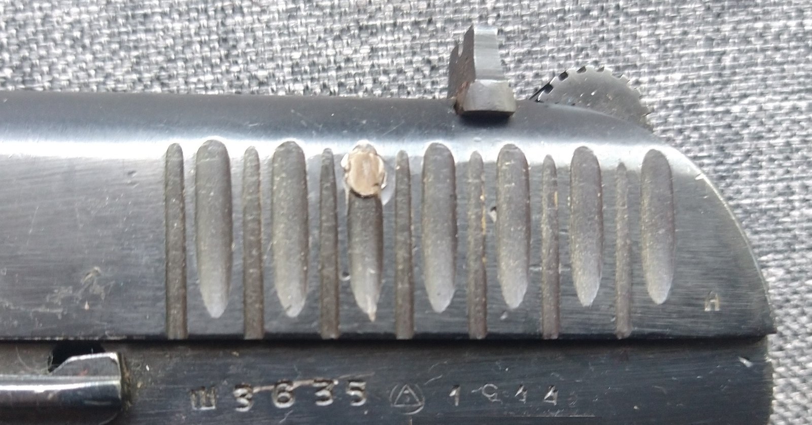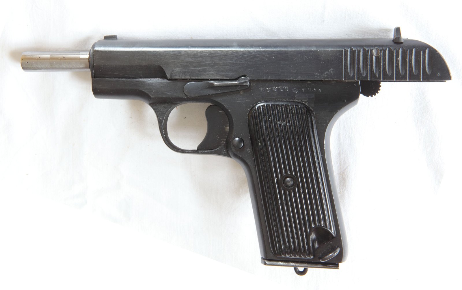 Pistolet TT-33 numer seryjny Sz3635 (cyrylicą: Ш3635), wyprodukowany w Iżewsku w 1944. W porównaniu z egzemplarzami przed- i powojennymi, daje się zauważyć dość toporne wykończenie powierzchni zewnętrznych (np. wyraźnie widoczne ślady frezowania). Kabura produkcji polskiej, powojenna czarna (używana w Wojskach Lotniczych, Marynarce Wojennej i Milicji Obywatelskiej).