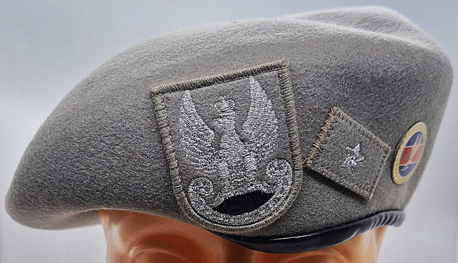 Jednostka jako patrona otrzymała Cichociemnych spadochroniarzy Armii Krajowej w 1995. Okrągła odznaka beretowa w postaci metalowej lub rzadziej haftowanej używana od lat 90-tych. Informacja o odznace beretowej widnieje w pozycji pt. "Oznaki beretowe Wojska Polskiego" - Piotr Wybraniec - pozycja 175.