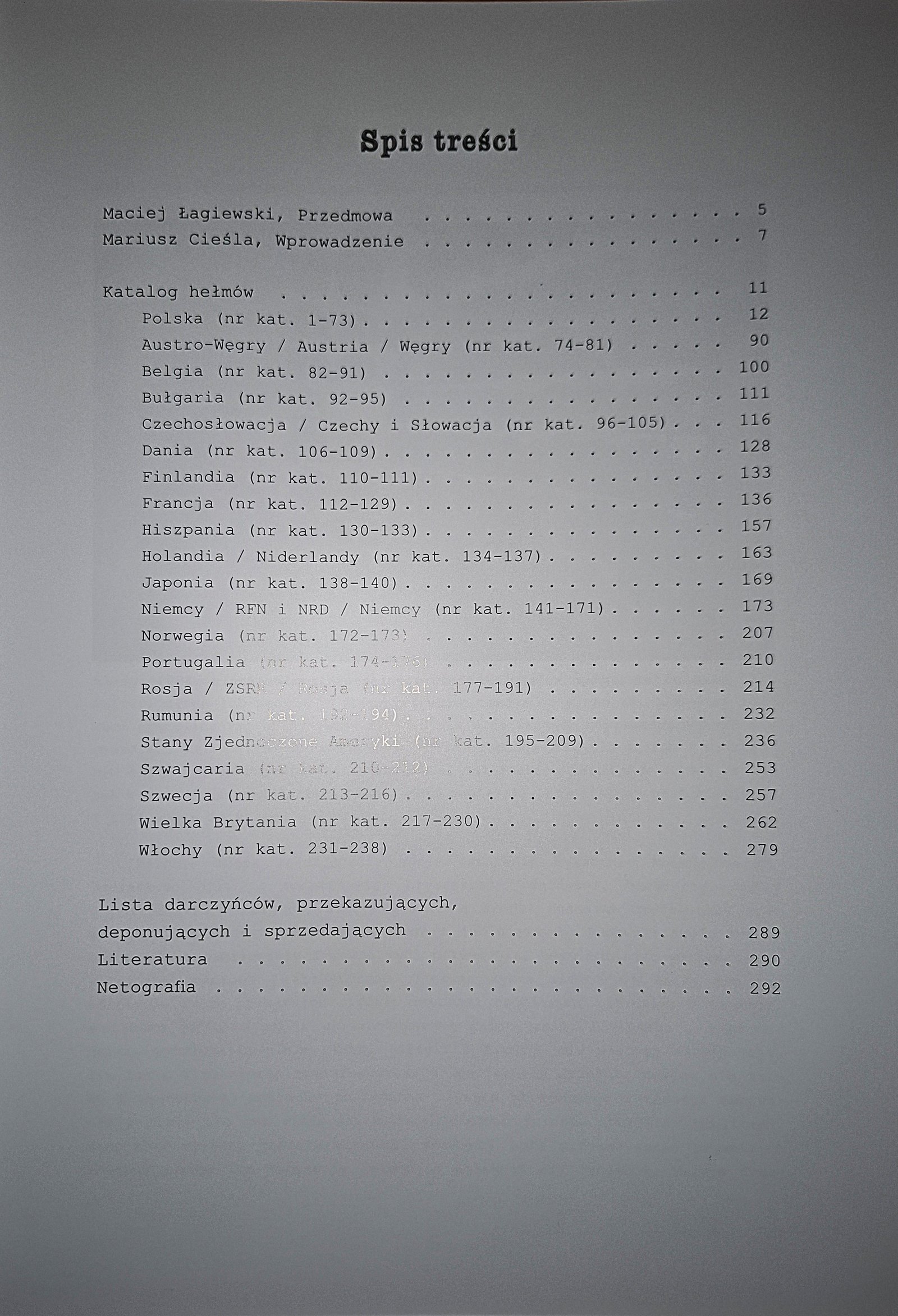 Katalog towarzyszący wystawie stałej poświęconej hełmom w sali im. Jacka Kijaka w Arsenale Miejskim we Wrocławiu. Bardzo ciekawa i obszerna publikacja. Wśród hełmofonów kilka informacji wymagających weryfikacji. Wśród zbieraczy hełmów pozycja "must-have".