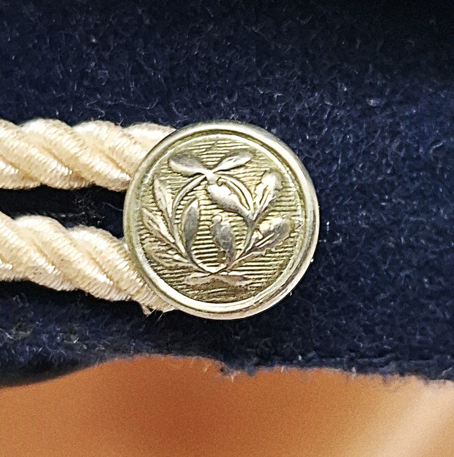 Materiał zasadniczy to granatowa tkanina podobna do gabardyny. Denko w formie okrągłej. Między otokiem i denkiem cztery kwatery z materiału zasadniczego. Otok obszyty granatowym zamszem. Na górnej krawędzi otoku biały, cienki galon. Wewnątrz podszewkę stanowi impregnowana tkanina. Usztywnienie stanowi pręt tworzywowy o przekroju połowy okręgu o średnicy ponad 10 mm. Potnik skórzany, lakierowany na czarno, perforowany trzema rzędami otworków. Z zewnątrz imitację paska podbródkowego stanowi biały sznurek pleciony, dwurzędowy. Przypięty guzikami do otoku. Guziki metalowe, tłoczone z symbolem wieńca laurowego. Przypinane na wąsy. Daszek powlekany materiałem skóropodobnym o jednakowej fakturze i kolorze na górze i od spodu. Na rancie obszyty czarnym tworzywowym paskiem. Na przodzie przypięta odznaka na słupek i nakrętkę.