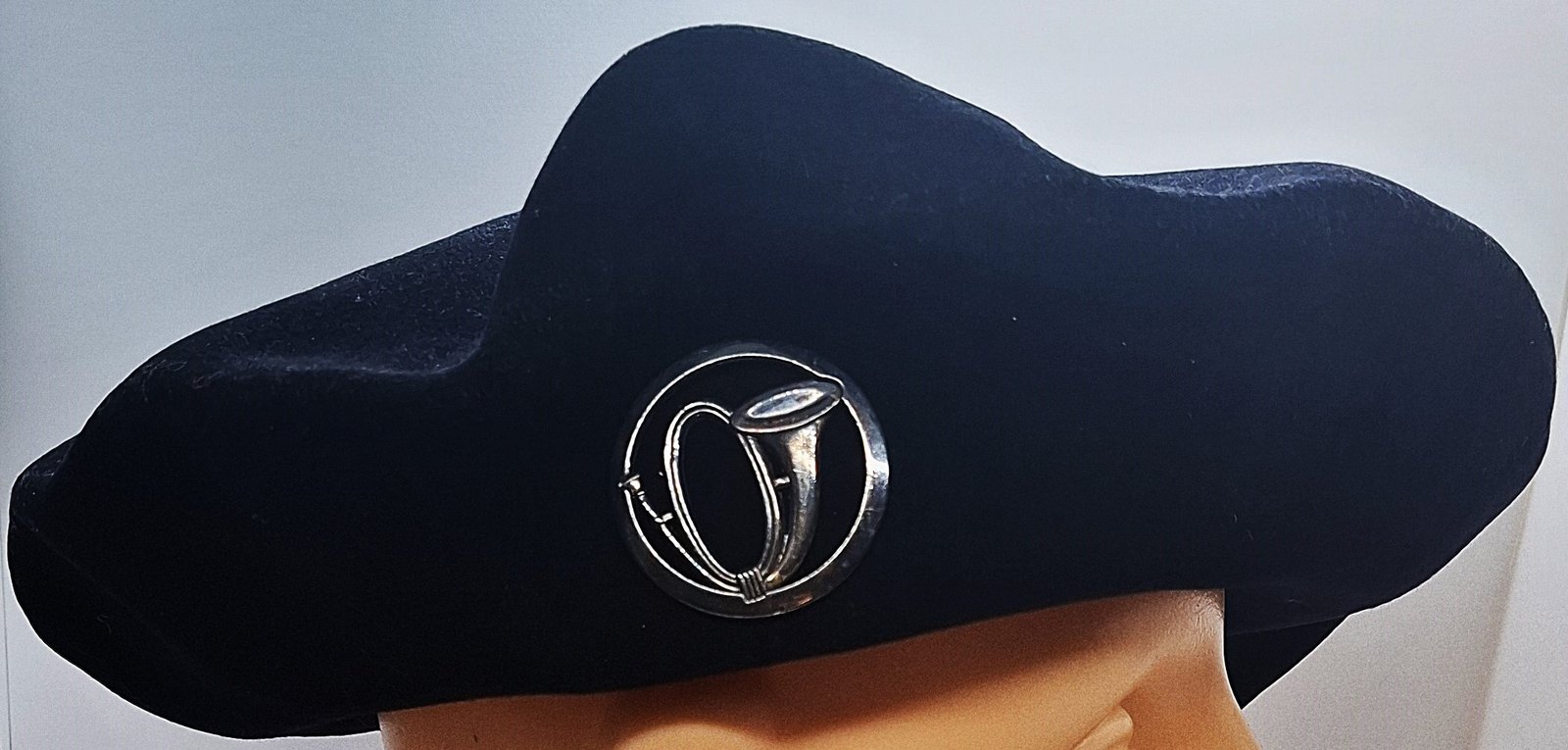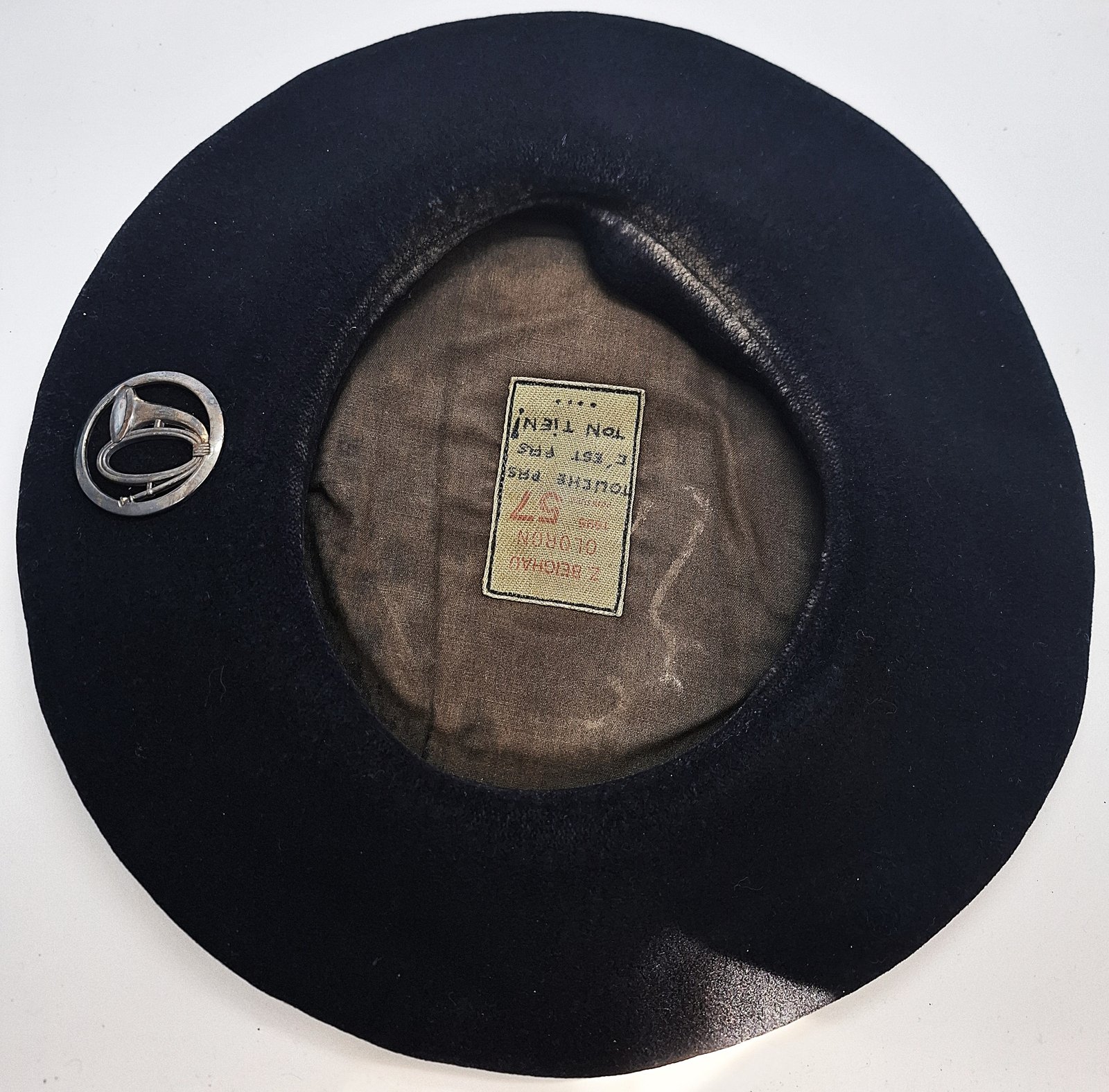 Charakterystyczny duży beret tłoczony. Denko jest wyłożone podszewką. Na środku wszyta metka. W miejscu odznaki brak usztywnienia. Brak lamówki i taśmy do regulacji rozmiaru. Na metce napis "touche pas c'est pas ton tien" - "Nie dotykaj tego, to nie twoje.".