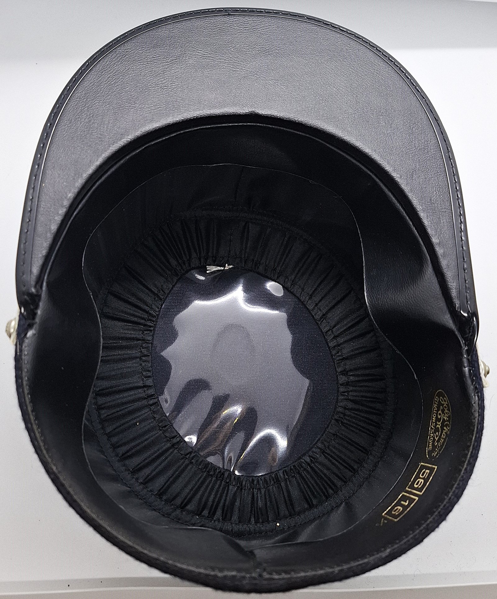 Otok z grubszego tworzywa. Obszyty materiałem zasadniczym w kolorze czarnym. Denko w kolorze niebieskim, bez węzła węgierskiego. Pasek metalizowany w kolorze srebrnym. Przypięty guzikami złożonymi z dwóch części. Zewnętrzna tłoczona z wizerunkiem gorejącego granatu, wewnętrzna płaska, z niech wychodzą wąsy do mocowania do czapki. Posiada skórzany potnik w kolorze czarnym. Daszek płaski, tworzywowy, z góry gładki lecz zniszczony, od spodu charakterystyczna podłużna faktura. Na rancie obszyty paskiem z tworzywa. Na przodzie gorejący granat haftowany szarymi nićmi na materiale zasadniczym. Wnętrze jest wyłożone podszewką ściągniętą w charakterystyczny sposób w denku.