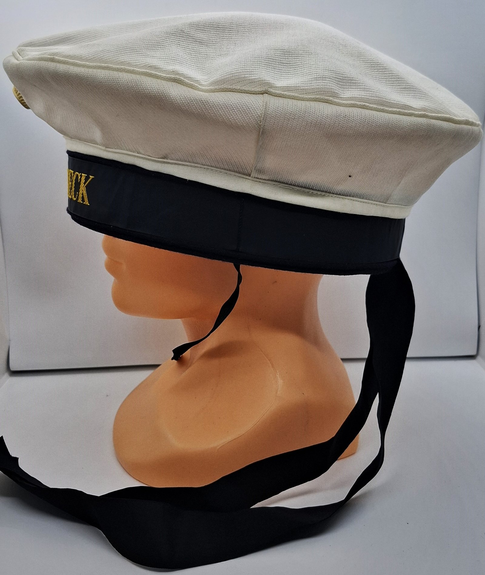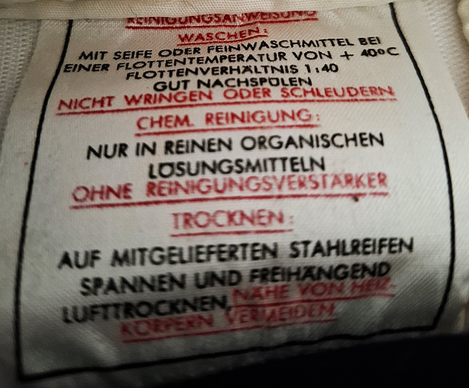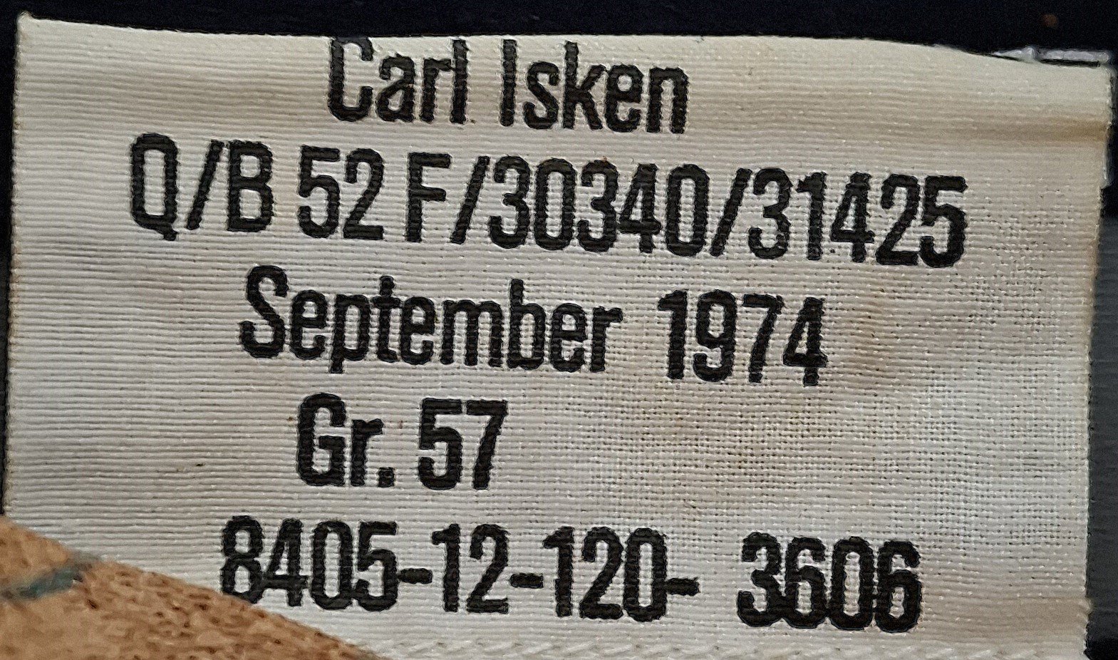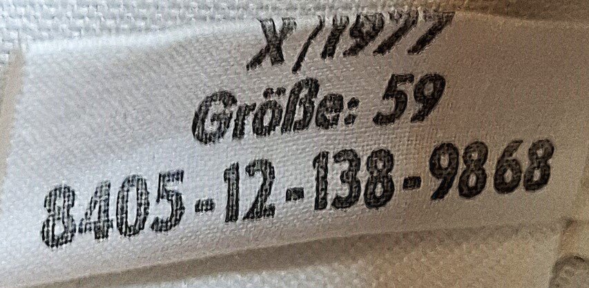 Otok z grubego tworzywa obszyty sukiennym materiałem w kolorze czarnym. Na nim nałożona taśma otokowa z napisem haftowanym złotymi nićmi. Potnik z brązowej, grubej skóry. Pod potnikiem wszyta metka dolnej części. Na zewnątrz nałożone denko z białego materiału z góry jednolity, od spodu złożony z 4 kwater. Metka górnej części wszyta między denkiem i kwaterami. Gumka pełniąca rolę paska pod brodę. W przedniej części znajduje się bączek w narodowych barwach niemieckich.