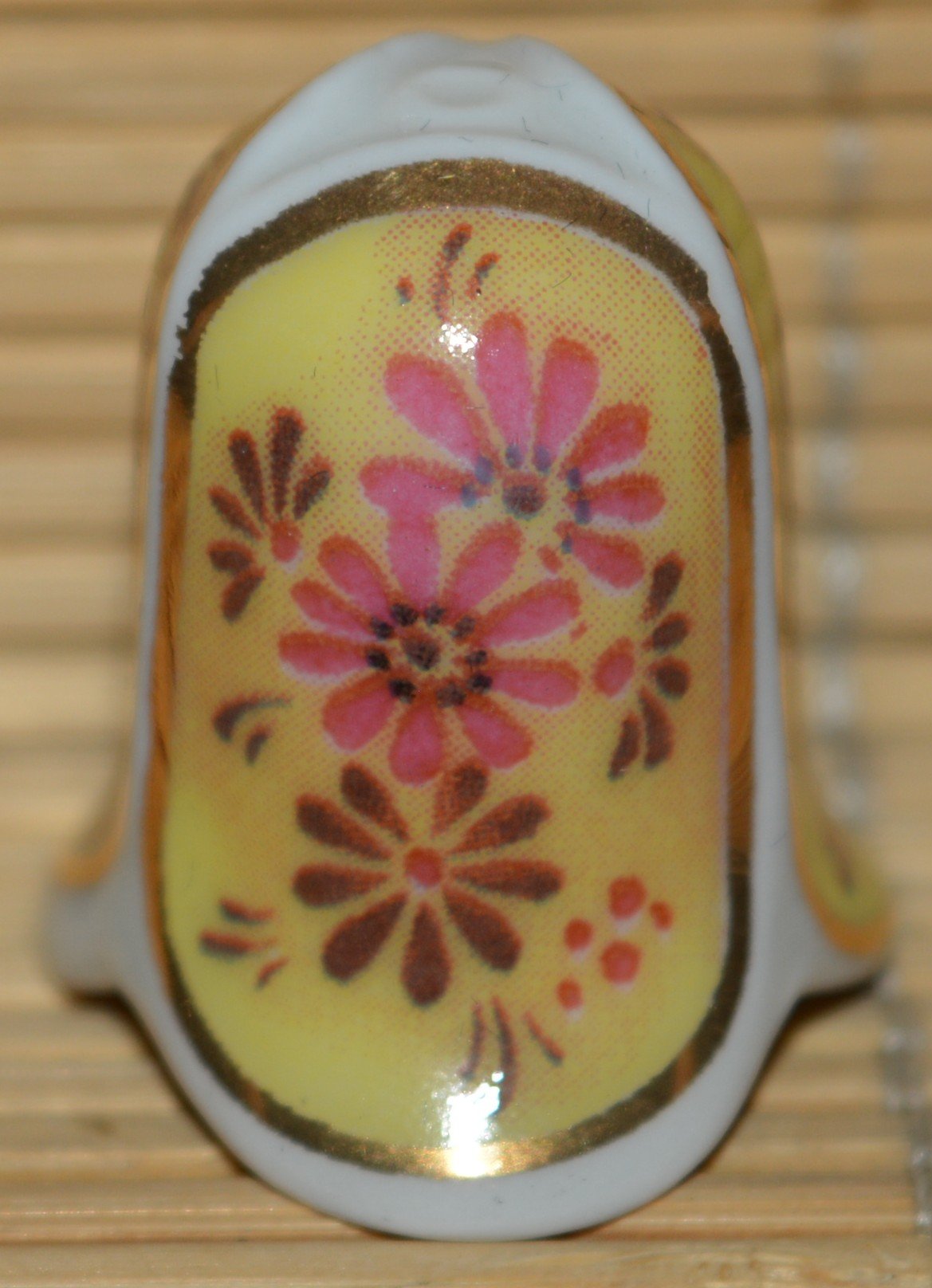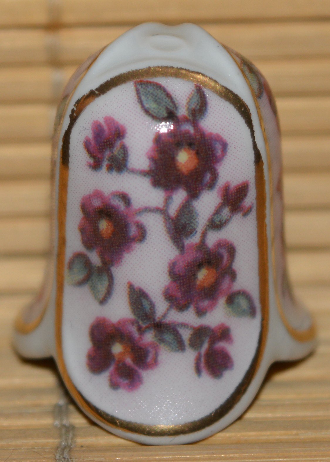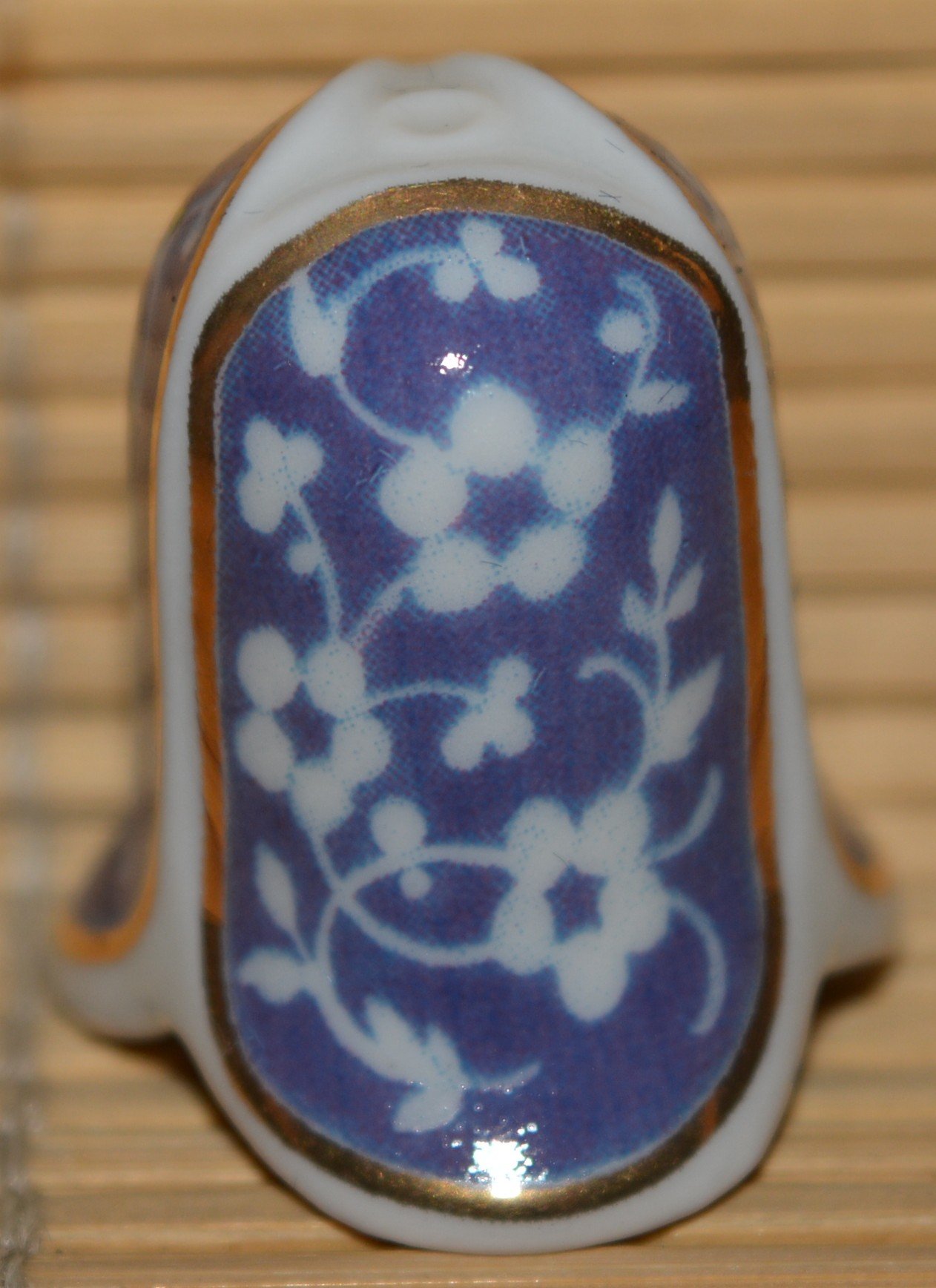 Naparstek porcelana Kolekcja o nazwie «Stoffmuster» czyli próbki tkanin obiciowych. Kolekcja liczy 15 naparstków w specjalnym pudełeczku z logo wytwórni. kształt naparstka przypomina kwiat dzwonka (trzy ścianki) sygnowany :Lindner Handarbeit